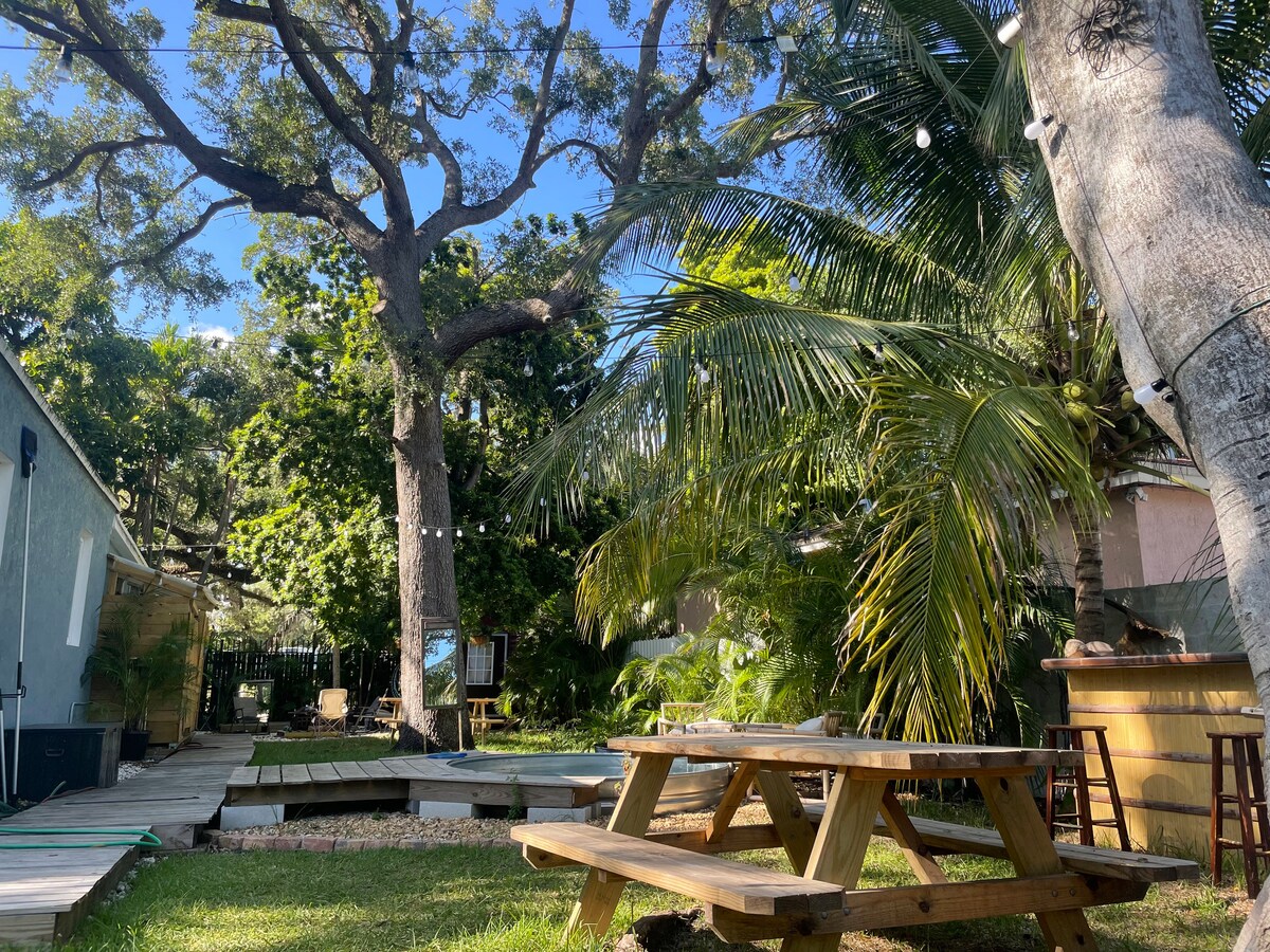 Terletak di kejiranan tasik Hollywood timur, rumah kami hanya 2 blok dari Hollywood Beach yang menakjubkan, dan 3 Minit dari pusat bandar. Laluan air yang menakjubkan mengelilingi kejiranan kami, sesuai untuk berjalan-jalan di matahari terbenam. Rumah kami sangat bersih dan dikemas kini. Nikmati halaman besar berpagar, kolam renang, meja ping pong, Pemanggang BBQ, dapur gas, dan dapur lengkap. Anda juga akan menikmati perabot luar menakjubkan kami dan TV pintar 75 inci yang anda boleh strim rancangan kegemaran anda. Sesuai untuk berehat