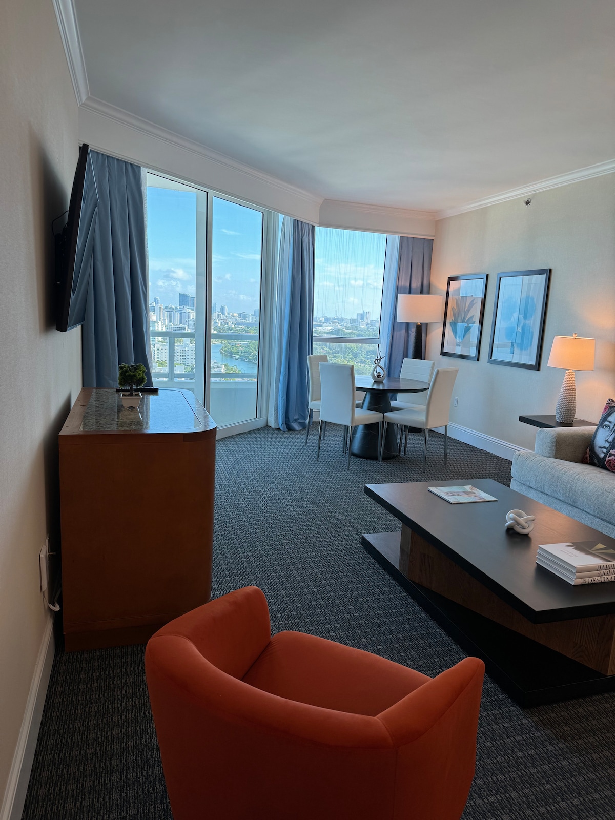 Kediaman menara Hotel Fontainebleau Tresor yang terkenal, bilik dengan pemandangan air dan latar langit yang menakjubkan. Datang dan nikmati semua kemudahan yang disertakan tanpa sebarang kos tambahan, Spa lima bintang, lebih daripada 8 kolam renang dan perkhidmatan Pantai. Suite Junior dengan balkoni dan dapur kecil, bilik mandi dengan pancuran mandi dan jakuzi, 7 restoran dan kelab malam yang berbeza!. Lokasi Prestige di Miami Beach. Valet letak kereta tidak termasuk dan akan dibayar di hotel jika perlu.