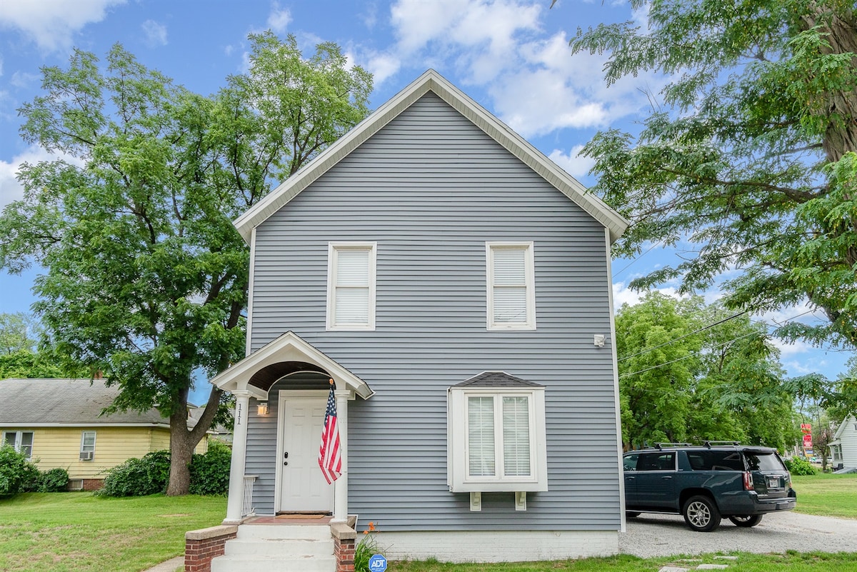 YURAN PEMBERSIHAN RENDAH! Menginap berhampiran dengan pantai, hanya 1.3 batu jauhnya, di penginapan kami yang luas di Michigan City, Indiana! Kemudahan mewah termasuk: tab jakuzi besar, kepala pancuran mandi berganda untuk pancuran mandi sehingga 2 orang, air kencing, suite saiz king besar dengan TV 65 inci, dan banyak lagi! Kami terletak di 11th St. Ini bermakna laluan kereta api South Shore berjalan betul-betul di hadapan rumah kami! Ia adalah zon tanpa tanduk.