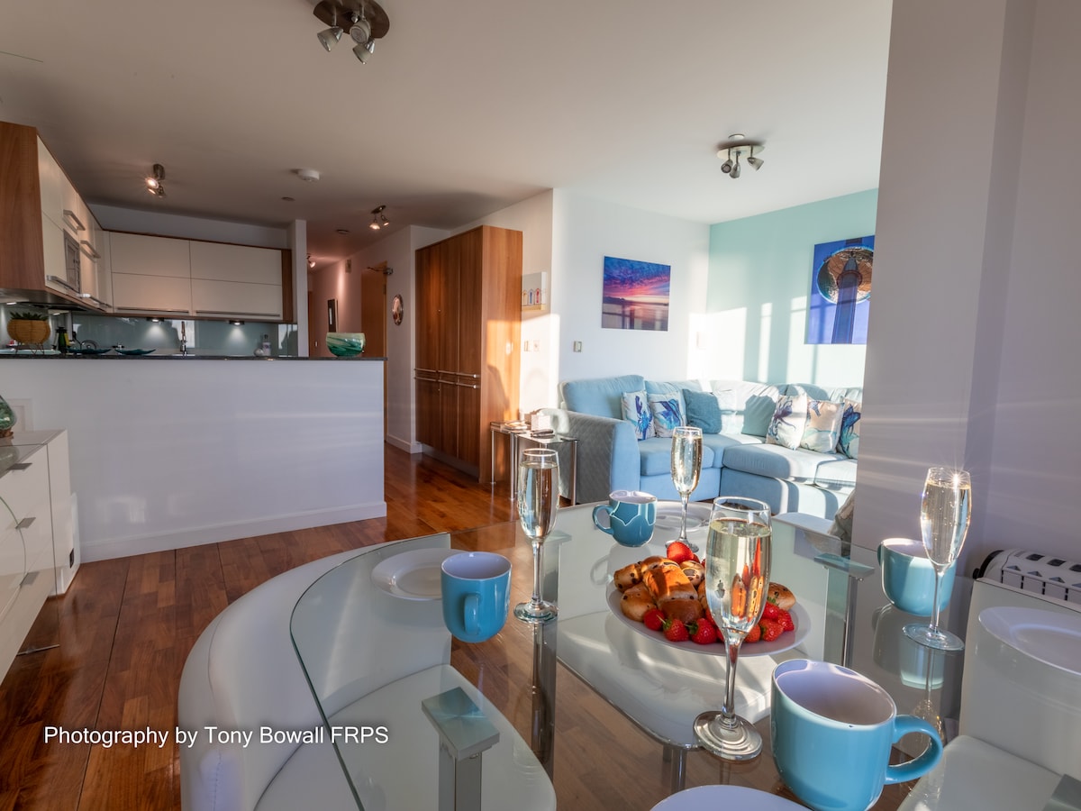 Apartmen mewah dan moden dengan balkoni pemandangan laut