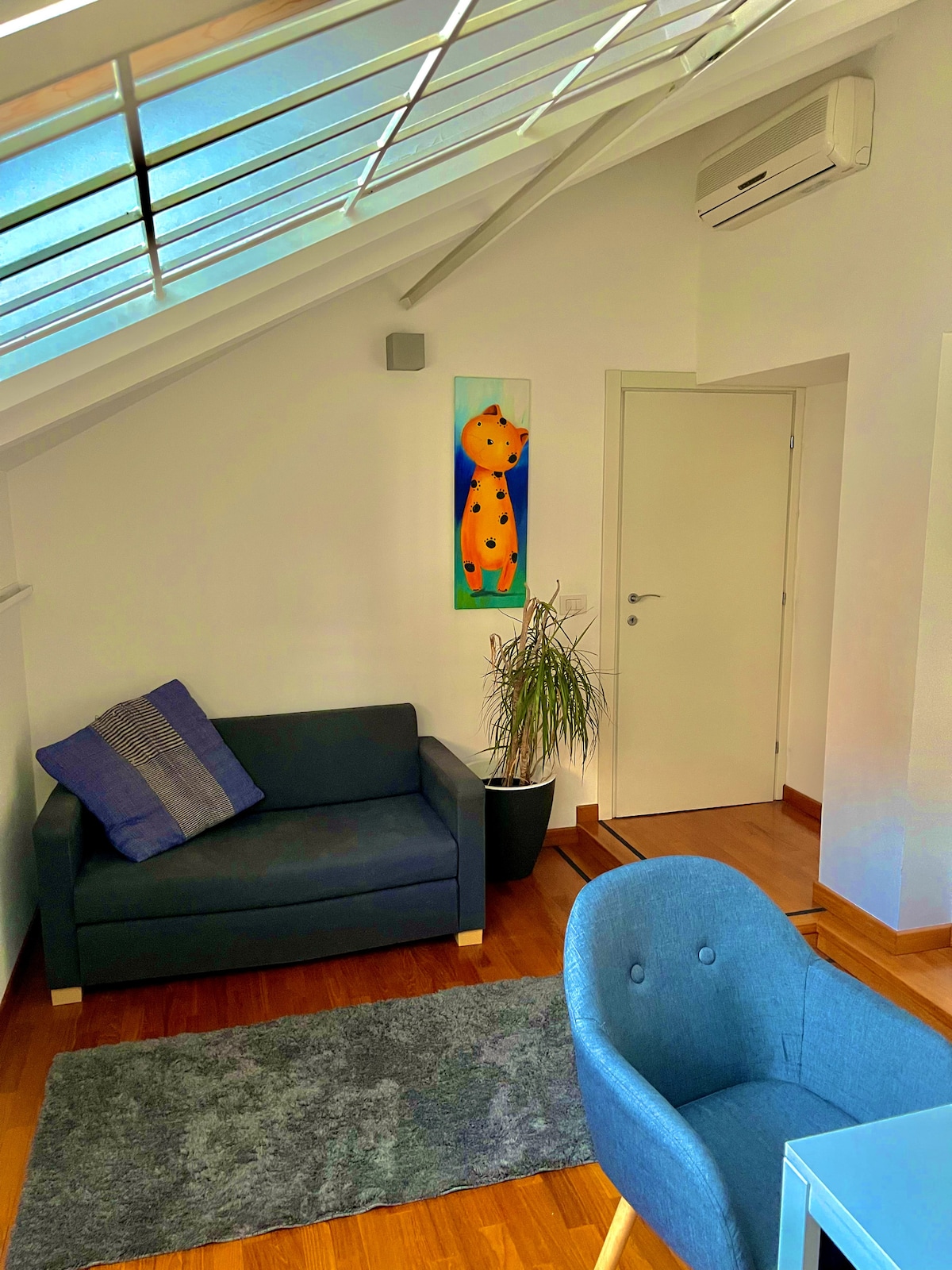Cozy apartment in the heart of Milan. It has a bedroom with a double bed that also serves as a living area, a bathroom with a shower, a room with desk and a couch and a terrace with city view. There is no full kitchen, but there is a coffee machine, a kettle, and a small refrigerator. Ideal for those who want to spend a nice weekend in the city center and falling asleep while looking at the stars.