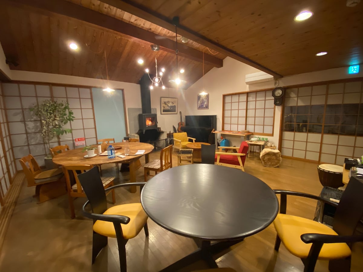 Rumah lama yang dibina 150 tahun yang lalu oleh pemilik "JP" yang suka DIY dan mengimpikan kehidupan yang ideal.Anda boleh menikmati pendiangan yang unik kepada rumah lama dan sauna telur unik di dunia. Khususnya, saya mengesyorkan sauna telur ini, yang dicipta dengan teliti dalam bentuk di mana haba beredar secara semula jadi.Semua ini buatan tangan (DIY)!Rasai haba dapur kayu di sauna dan haba kreatif JP. Anda juga boleh menikmati tusuk periuk dan ikan di pendiangan yang dihidupkan semula dengan DIY.Semua bahan akan dibawa masuk, jadi sila beli di pasar raya berhampiran sebelum datang. Tempat ini adalah kawasan yang dipanggil "Koya", lorong gunung di Misaku City, Okayama Prefecture.Saya rasa menarik untuk singgah di Kampung Nishisaokura, yang popular dengan kampung penduduk luar bandar, yang dekat sahaja.