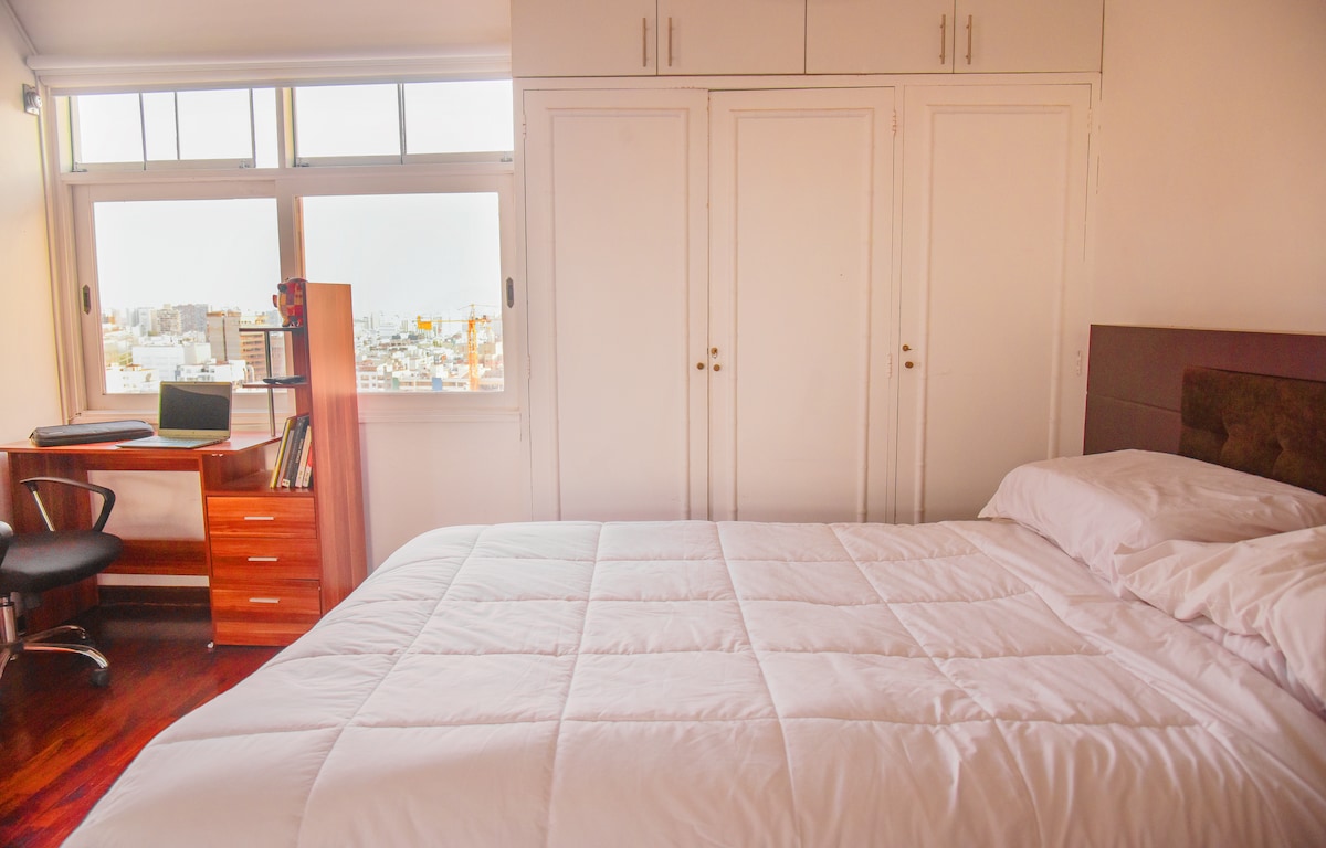 Apartmen mini yang terletak di kawasan perumahan yang tenang di daerah Miraflores, Lima-Peru. Di sebelah Parque Tradiciones, dikelilingi oleh kawasan hijau dengan aktiviti luar, muzium, permainan, dan kawasan pelancongan. Berhampiran dengan stesen Benavides/Ricardo Palma del Metropolitano, stesen Schell del Corredor Azul, pengangkutan awam dan persendirian secara percuma. Kami mempunyai panduan dengan pasar mini, pasar raya dan restoran berhampiran untuk kemudahan anda.