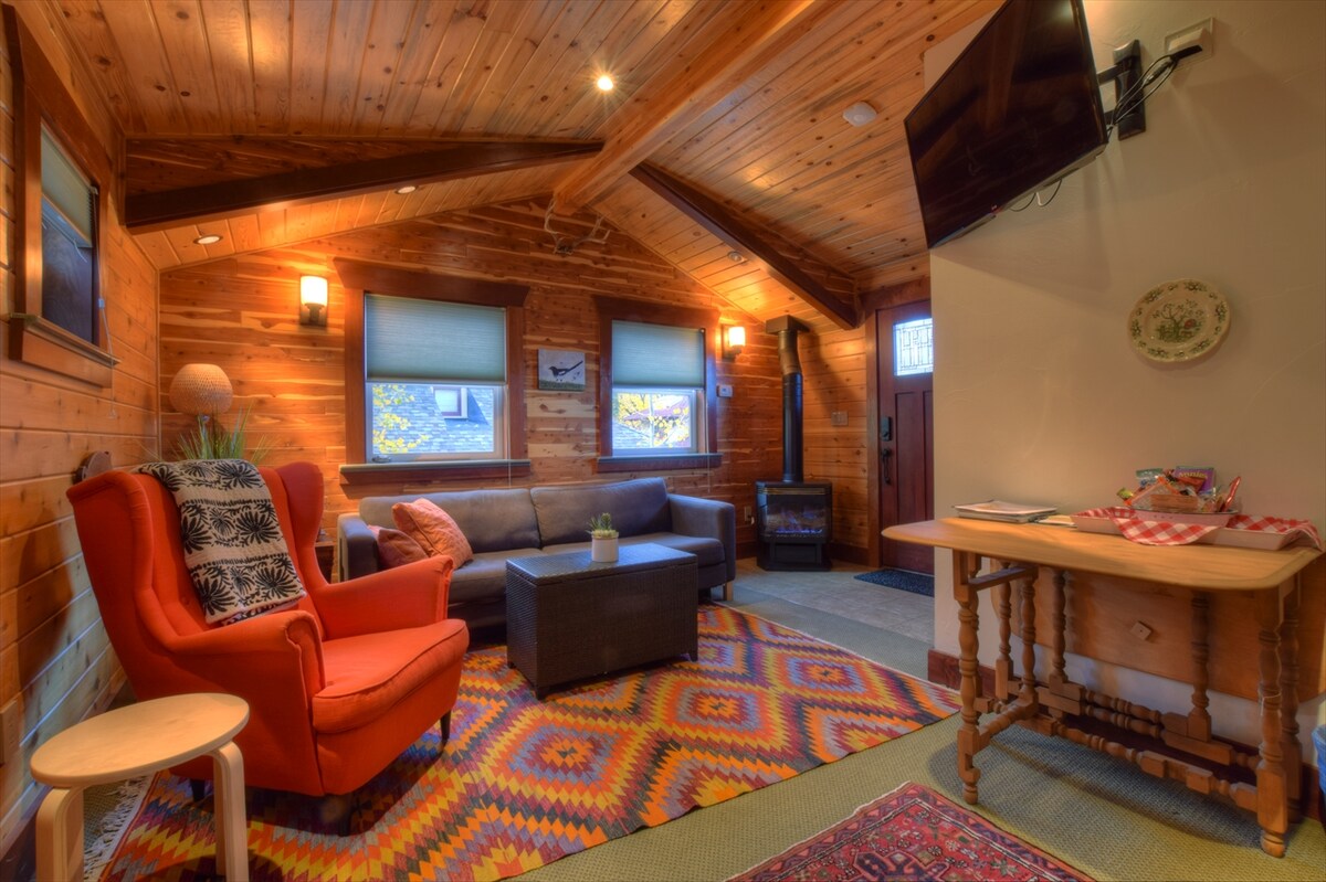 Masuk & letak kereta di lorong, antara 5 & 6, dengan carport berkongsi di samping kotej. Kotej kecil ini pada asalnya merupakan rumah kereta kuda; kejiranan campuran, katil queen 2015 tilam baru. Bilik mandi & dapur kecil penuh. Siling berkubah, & banyak cahaya semula jadi. Rombakan 2014: katil ke-2 adalah sofa yang dilipat futon tidur 2 lagi, penutup lantai baru, teduhan hitam. Perapian jubin & pendiangan gas kecil. Akses bilik mandi melalui bilik tidur. Tiada halaman dengan sewaan Airbnb.