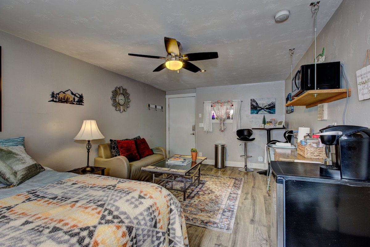 Pencahayaan mood yang menakjubkan, bersih sempurna, banyak tumbuh-tumbuhan, suasana yang hebat, dan direka bentuk dengan teliti; perlu kita katakan lebih lanjut? Unit baru ini berasingan sepenuhnya daripada rumah kami. Dengan katil queen dan sofa tarik bersaiz penuh, ia boleh menempatkan hingga 4 orang. Loteng kami yang unik dan selesa terletak di tengah-tengah dan berhampiran dengan segala-galanya. Karya seni oleh artis tempatan dipamerkan, dan banyak barangan tersedia untuk dibeli. Kami menawarkan hospitaliti yang prihatin, mesra, prihatin, dan berorientasikan perincian. Mari tinggal bersama kami!
