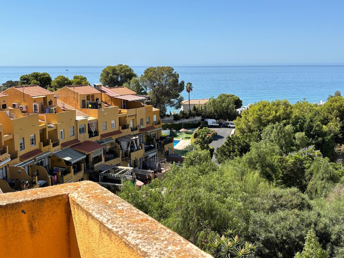 .Diskaun dari 7 malam. Tempat yang santai di atas bukit kecil dengan pemandangan teluk yang menakjubkan dari semua bilik. Jauh daripada kebisingan tepi pantai. Pantai La Herradura lima minit dengan kereta. Ruang tamu 35 meter persegi. Teres 35 meter persegi. Dua bilik tidur dan satu bilik tambahan. Garaj persendirian. Di sebelah Taman Semula Jadi. Dua kolam renang , dibuka sepanjang tahun Dua gelanggang tenis paddel ( raket) Tiada haiwan peliharaan .