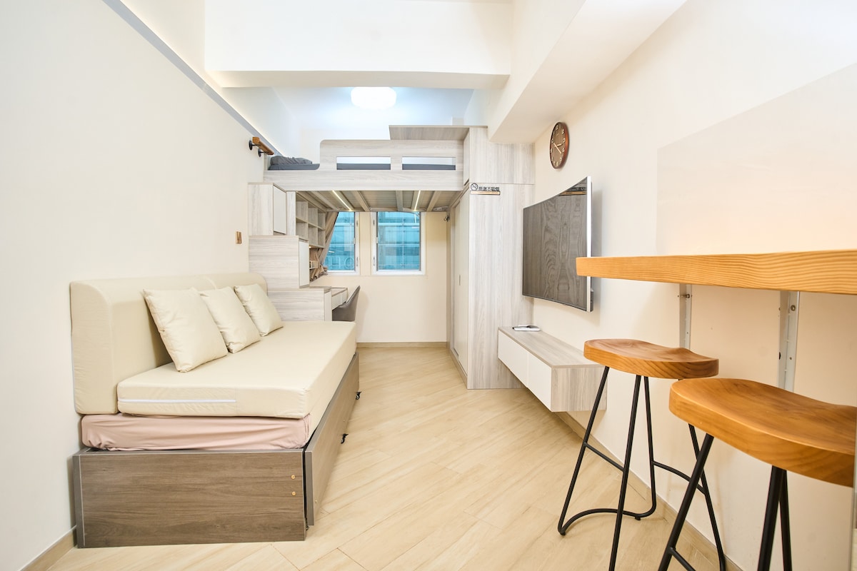 (LM3) Yau Ma Tei, berdekatan dengan pintu keluar stesen MTR, berdekatan dengan kawasan membeli-belah Mong Kok, lobi 2 bilik, sesuai untuk 4-8 orang