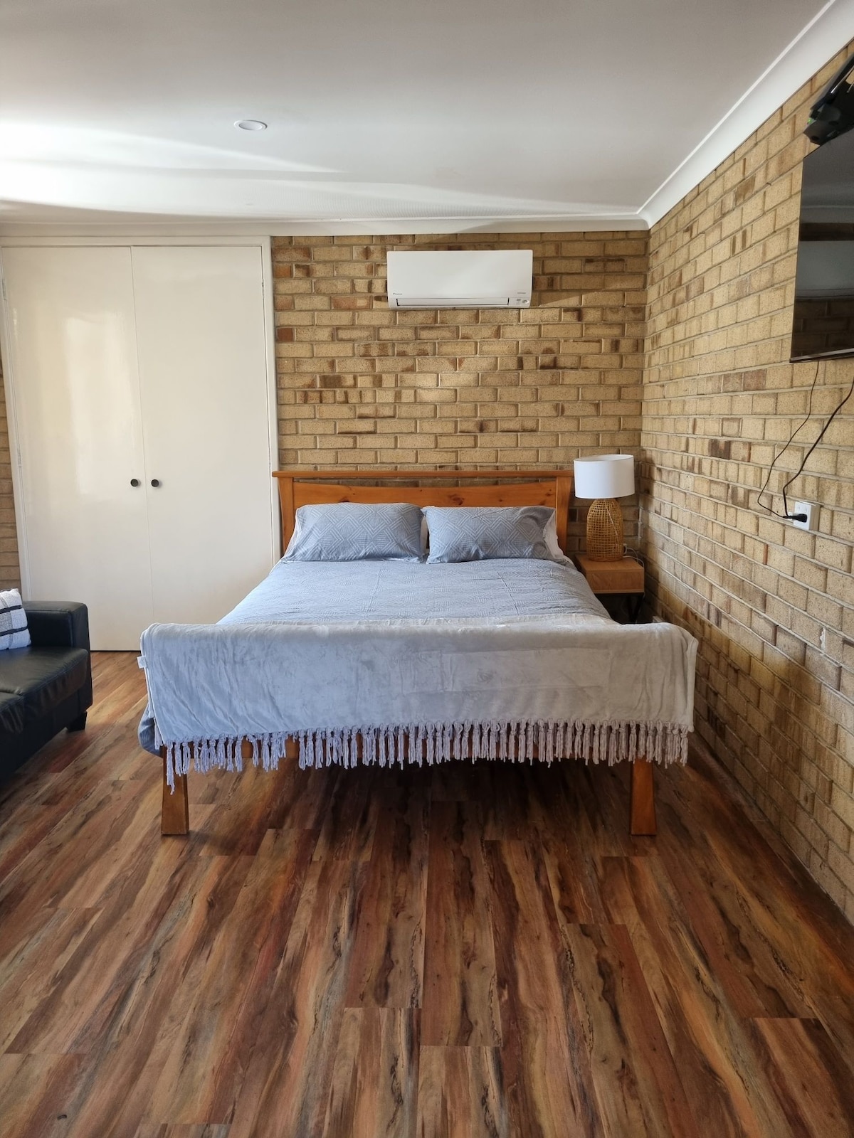"Cosy Corner" (flat nenek) kami terletak di bahagian belakang penginapan kami, betul-betul di bandar-dalam jarak berjalan kaki yang mudah ke pusat bandar dan tepi pantai. Ia menampilkan katil bersaiz queen, dapur kecil untuk memasak asas, dan bilik mandi peribadi. Studio ini mempunyai pintu masuk berasingan sendiri, walaupun halaman belakang dikongsi dengan rumah utama.