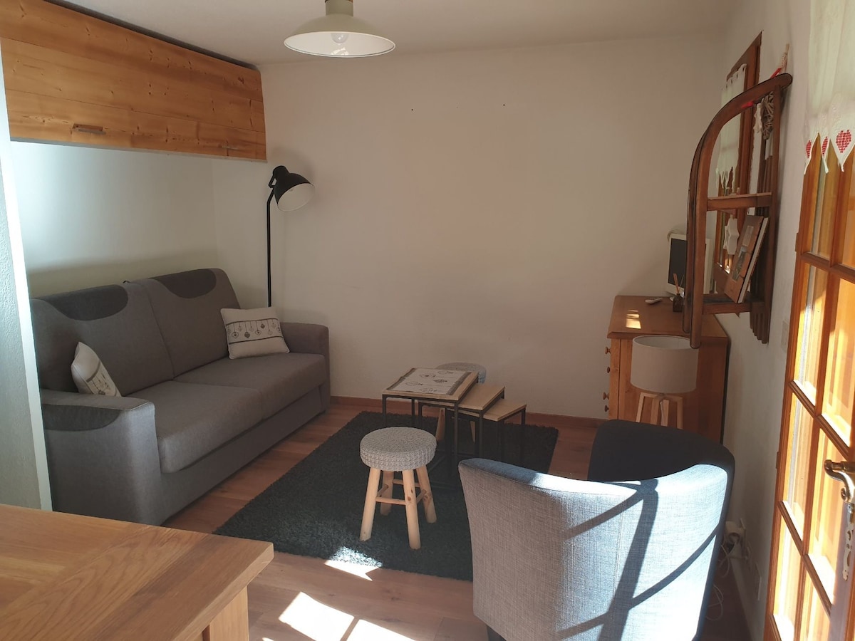 Penginapan yang tenang pada musim panas dan sejuk. Studio menawan untuk 4 orang (kemungkinan 1 kanak-kanak tambahan), lengkap, dengan teres menghadap barat, pemandangan Mont Joly. Ia dalam keadaan sempurna. Studio ini terdiri daripada kabin dengan katil dua tingkat (+ katil kecil yang boleh ditarik keluar); bilik mandi dengan tab mandi dan tandas; dapur kecil; ruang tamu dengan katil sofa. Mesin pembuat krep, fondue, raclette, wafel, pengadun, mesin pembuat kopi penapis, Senseo, cerek, pembakar roti, ketuhar mini, ketuhar gelombang mikro... Semua cadar disediakan.