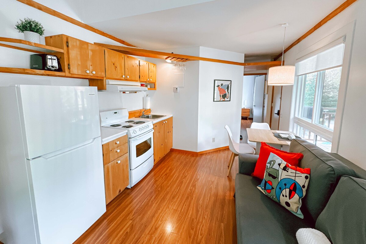 Anda akan berada hampir dengan segala-galanya apabila anda menginap di kondominium kami yang terletak di pusat bandar! Bersih, bergaya dengan semua yang anda perlukan untuk penginapan santai di Mont Tremblant. Terletak betul-betul di sebelah kampung pejalan kaki, 5 minit berjalan kaki ke lif. Katil saiz queen di bilik tidur utama, dan loteng yang lapang mempunyai dua bujang dan katil siang yang terbuka kepada saiz king. Semua disediakan, termasuk pinggan mangkuk, periuk, tuala dan cadar. Tempat letak kereta untuk 1 kenderaan betul-betul di hadapan, kenderaan kedua boleh berada di lot utama berhampiran.