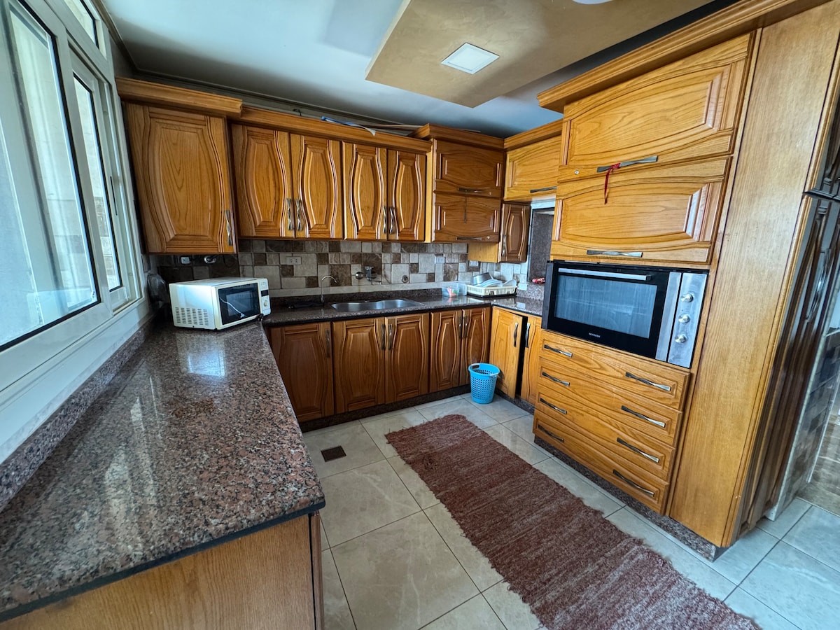 Apartmen 3 bilik tidur yang menakjubkan menghadap Laut Mediterranean yang indah di tengah-tengah Alexandria. Penghawa dingin dan berperabot lengkap. Teres luas yang indah dengan meja 4 tempat duduk. Dua bilik boleh melihat laut dengan jelas walaupun anda berbaring di atas katil dan yang ketiga melihat di jalan yang luas. Semua yang anda mungkin perlukan adalah berhampiran, dua minit berjalan kaki di Jalan Khalid Ibn Al-Waleed yang terkenal. Kami boleh mengaturkan untuk menjemput anda dari lapangan terbang dengan tambang biasa.