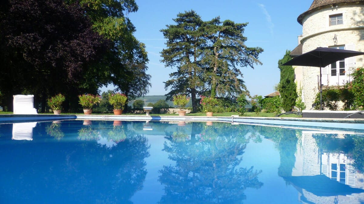 Apartmen kecil (T2) tenang, elegan dan berhawa dingin, untuk 2 atau 4 orang, di tingkat bawah rumah keluarga. Anda boleh menikmati kolam renang, dikongsi pada hari bekerja, dari Isnin hingga Jumaat, (KECUALI hujung minggu dan hari cuti). 3 minit dari kampung utama, dengan semua kedai, serta terminal kereta elektrik,dan 15 minit dari A6, Mâcon atau Tournus. Aktiviti: berjalan di dalam hutan dan ladang anggur, memancing, gua Azé dan Blanot, istana zaman pertengahan, ladang pejantan Cluny..
