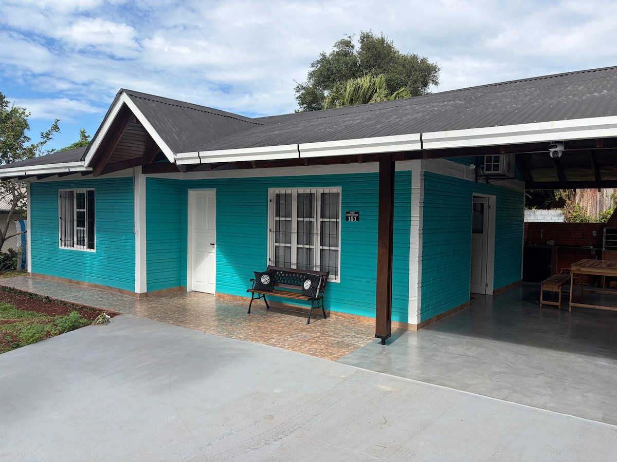 Alojamiento único y tranquilo a 90km de las Cataratas de Iguazú, a 100km de aeropuerto internacional de Foz de Iguazú-Brasil y camino a las playas brasileñas por Bernardo de Irigoyen. Cochera cubierta, deck y patio de descanso. AA frío/calor Capacidad: 4 personas (hab. matrimonial y cama marinera en el estar).