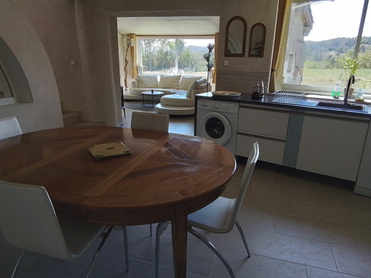 Rumah kami dengan keluasan hampir 170 m2 diperbuat daripada struktur kayu, dengan tingkap besar terbuka kepada lot berhutan dan tebing Vercors. Sesuai untuk percutian hujung minggu untuk sukan dan alam semula jadi hujung minggu, atau selama seminggu dengan rakan-rakan di rantau Vercors yang indah, anda akan menemui semua keselesaan yang diharapkan dan peralatan berkualiti: Pendiang api ruang tamu yang besar, dapur terbuka, 3 bilik tidur besar, 1 bilik mandi besar dengan pancuran mandi, 1 bilik dobi, 1 tandas, kolam renang (10 x 4m) pada musim panas