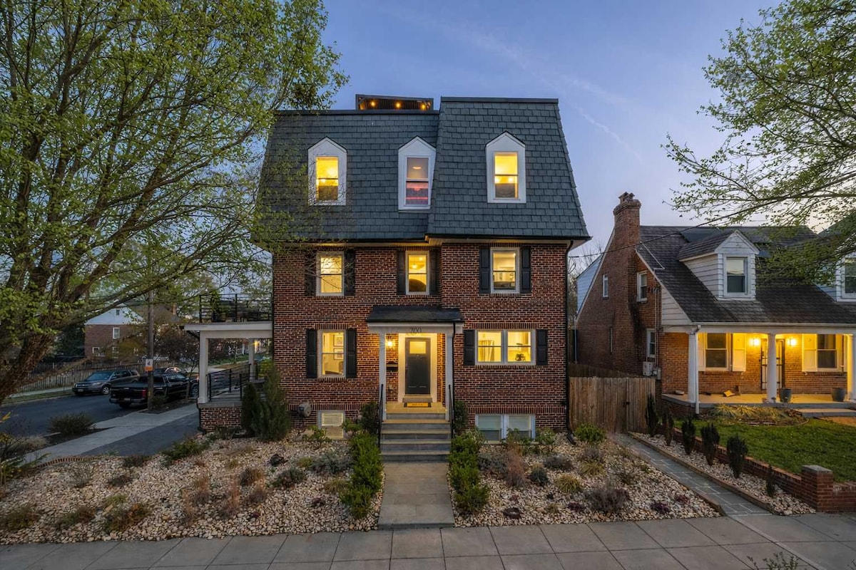 Wake up to birdsong beside a waterfall & tranquil lotus pond, just 20 min to downtown DC. Spacious 3-bed retreat offers on-site parking, super fast WIFI, home gym, steam shower, yoga space, EV charger, & five decks. Walk to organic market, restaurants, & scenic trails in peaceful Takoma Park. Recently renovated from top to bottom. Plan your adventures by day/relax by the pond at night. Our reviews say it all!! Superhost service to top it off. Montgomery County Reg # STR24-0017