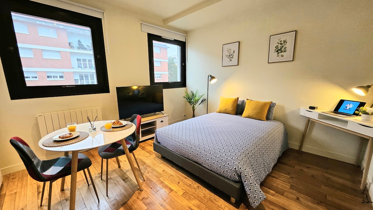 🏛hyper centre 📐studio LILAS neuf 26m² 🌿 décoration végétalisée 🐦très calme, sécurisé, climatisé❄️/🌞 😴ICI vous dormirez bien ! 🚇A 5 'de tout, PARIS 10', centre 30' 🚗parking gratuit 🧽Logement très propre 🏡Immeuble privé pour AIRBNB 🍰Cuisine super équipée Large pièces de vie s'ouvrant sur une terrasse végétalisée⚘️ 🛏Un vrai lit et des draps de qualité hôtel 5⭐️ 🚿Une SDB avec douche à l'italienne. Recommandé par mes clients 🖥visite vidéo sur YOUTUBE : LE JARDIN DES ELFES