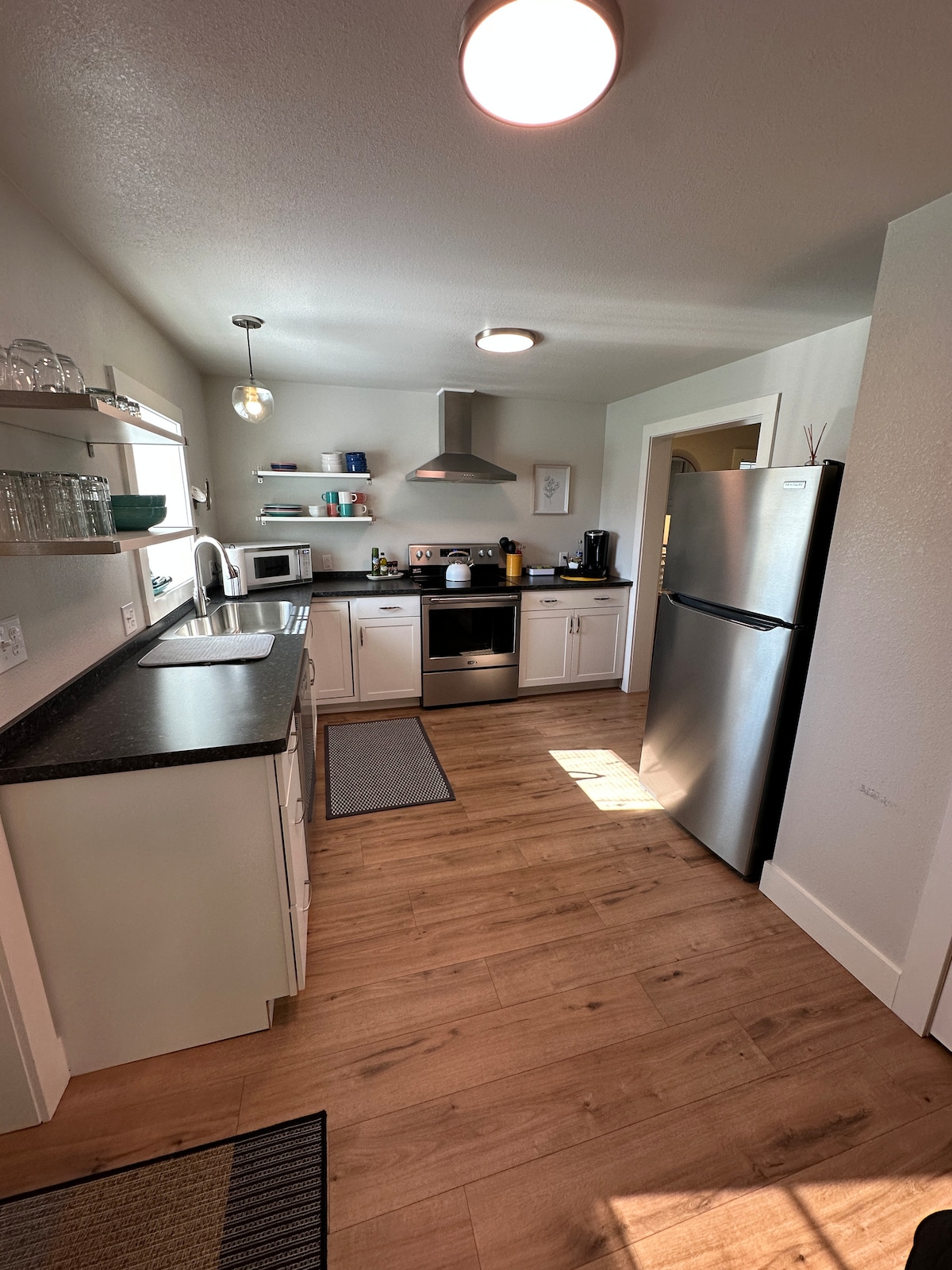 Only three blocks from downtown this first floor condo has a king bed in its primary and a full size second bedroom. This newly renovated duplex gives each unit its own separate entrance, and is well appointed with laundry and has everything you need before a day of exploring charming Elkins or the Mon Forest. The fully stocked kitchen has everything you need to prepare meals or just grab a cup of coffee from the beverage station.