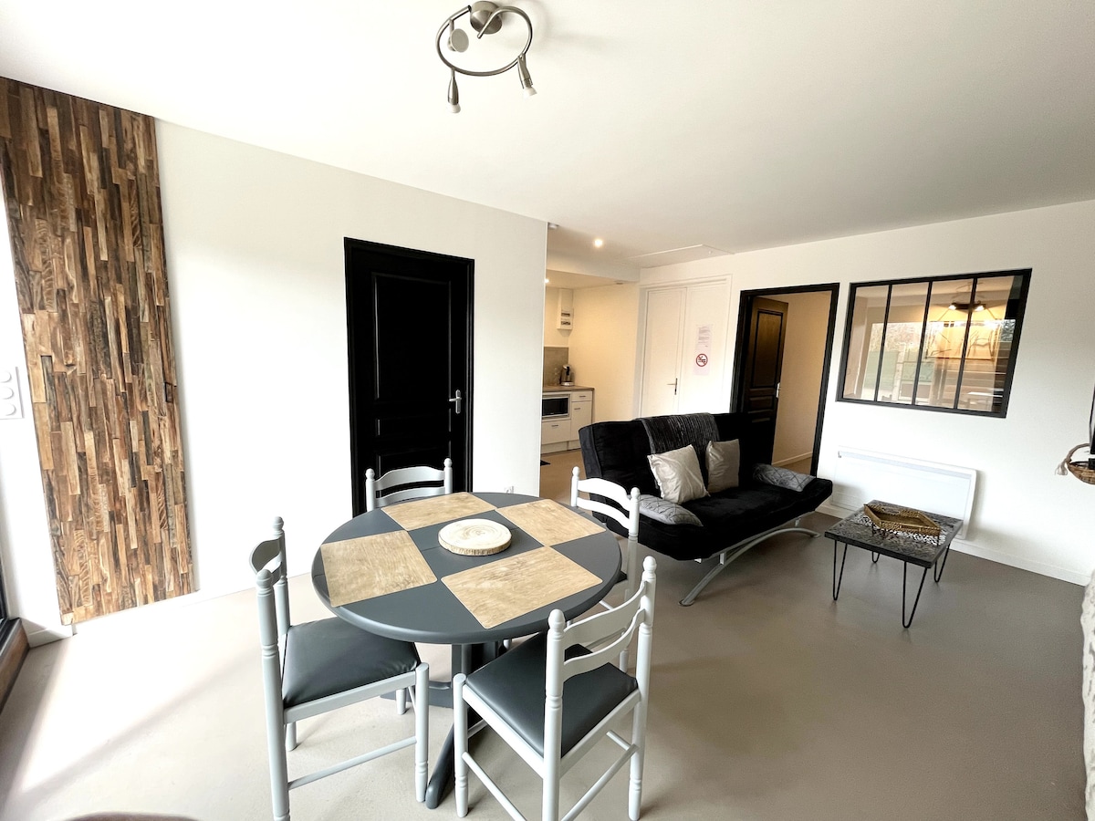 Berehat romantik di rumah kecil kami yang serba lengkap di tengah-tengah kampung Anjou. Nikmati tab mandi balneo di bilik tidur, katil saiz king 180x200, serat, dan semua yang anda perlukan untuk menghabiskan satu malam atau lebih. Daftar masuk adalah bebas dan bijaksana. Satu botol wain berkilau ditawarkan serta kapsul kopi dan teh. Anda mempunyai perkhidmatan raclette, perkhidmatan fondue dan coklat.