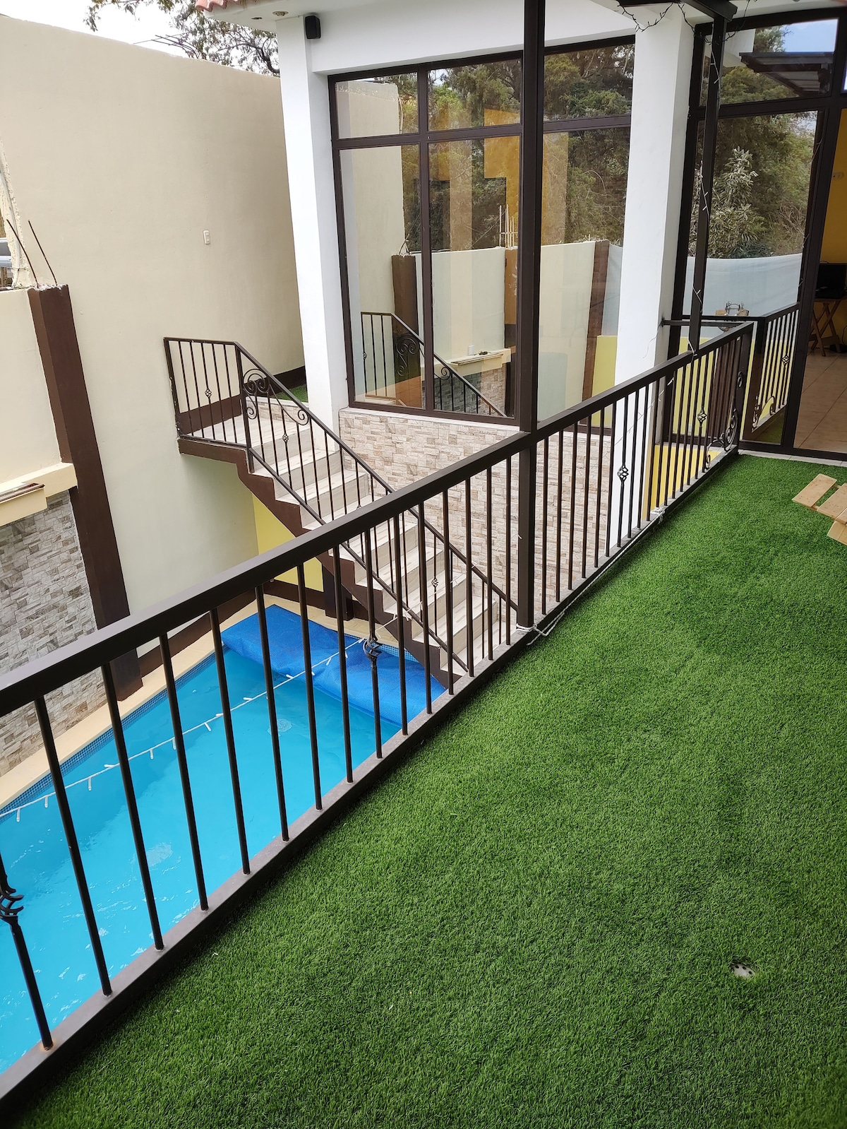 Apartamento completo con un lindo jardín interno. Podrás aprovechar al máximo tu estadía al estar en un lugar céntrico y al mismo tiempo relajarte en un lugar tranquilo con jardín. Ubicado a 20 minutos del aeropuerto Internacional La Aurora, a 10 minutos de zonas de restaurantes, hospitales y cerca de transporte público, que lleva directamente al Centro Histórico. A la par del alojamiento se encuentra una tienda de conveniencia y a dos cuadras se encuentra un supermercado Torre Express