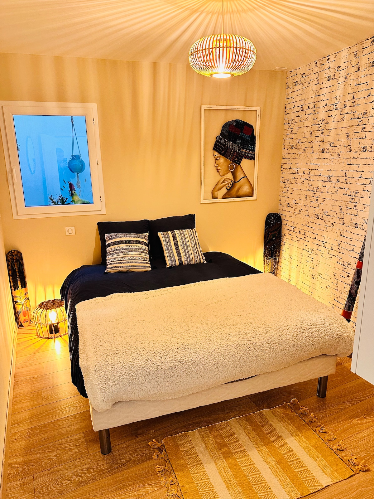 Selamat datang ke Black Suite, loteng yang diubah menjadi Love Room, suasana untuk kemesraan dan keberanian. Direka untuk pasangan, suite yang gelap ini mewujudkan suasana intim dan memukau. Nikmati balneo peribadi untuk dua orang, kerusi Tantra untuk membangkitkan deria anda, ayunan erotik, dan salib Saint-André untuk momen yang kemuncak. Katil besar 160 cm melengkapkan ruang ini yang dikhususkan untuk kemewahan, keseronokan dan keghairahan. Hayati pengalaman yang tidak dapat dilupakan.