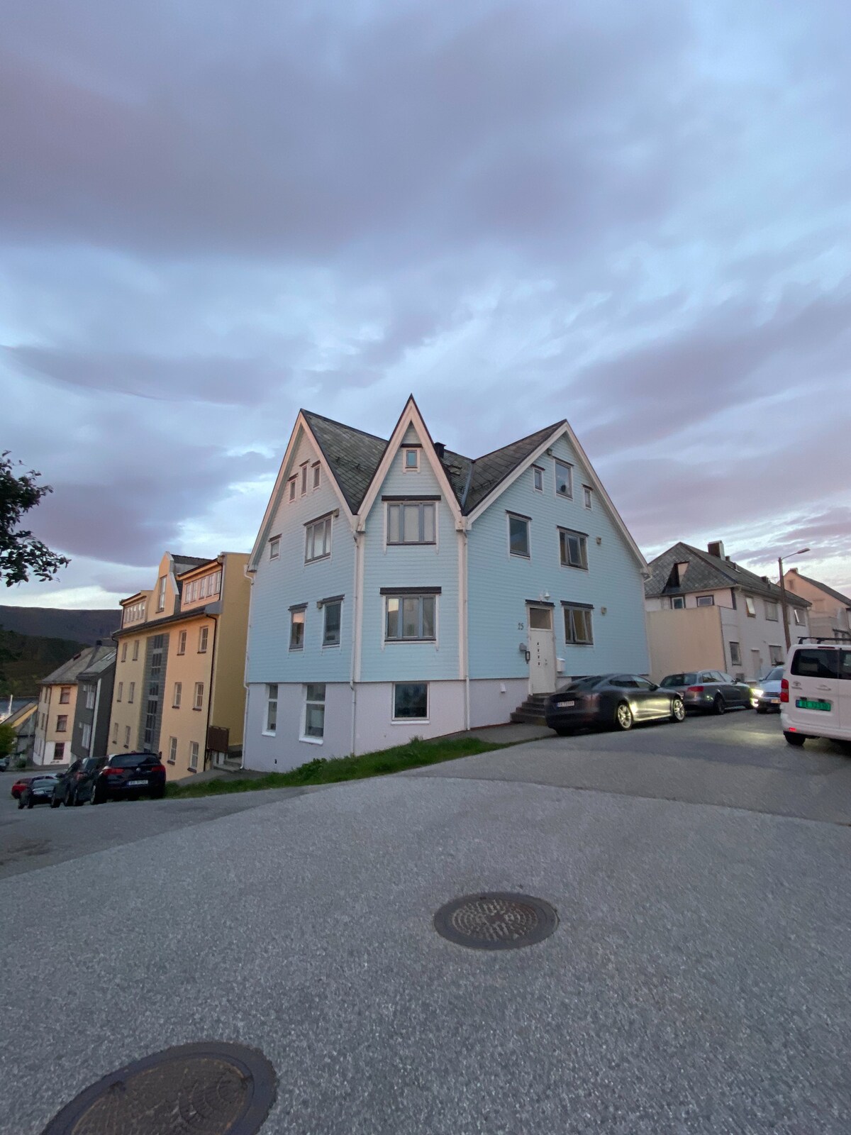 Rumah bandar 2 tingkat dan 3 bilik tidur, pemandangan indah, tempat letak kereta percuma dan akses yang baik ke pusat bandar. Hanya seminit berjalan kaki ke stesen bas. 5 minit memandu atau 20 minit berjalan kaki ke taman laut Atlantik. Dan jalan yang singkat ke Sugar Mountain. Anda akan mendapat pemandangan yang indah dengan kedua-dua bandar, pantai dan fyord dalam satu. 1 katil saiz king dan katil bayi dalam satu bilik tidur, katil single di bilik tidur lain dan di bilik ketiga katil ini panjangnya 170 cm ( lebih kurang 7 tahun)