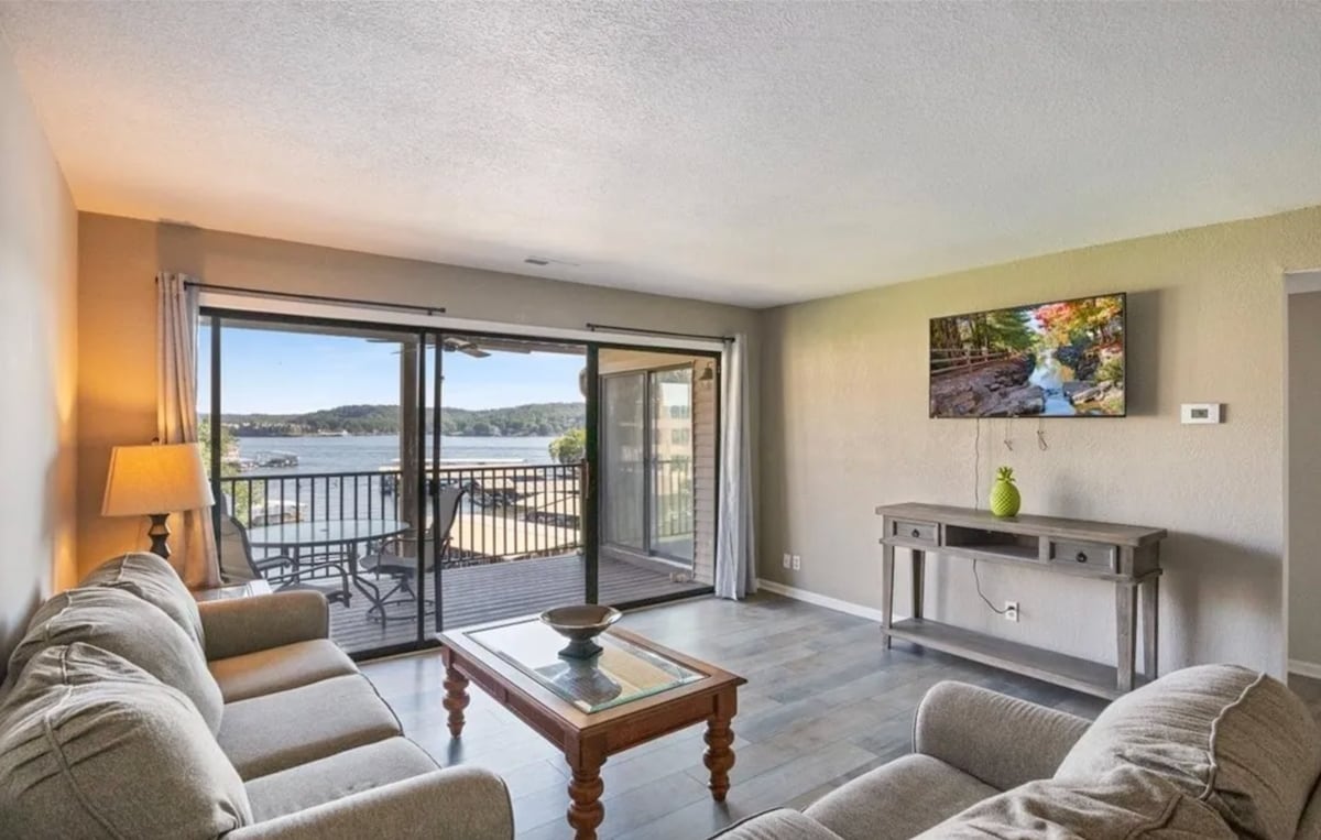 Time to relax at your own private Ozark Island Getaway condo! This newly remodeled 3-bedroom condo has a screened in patio with amazing main channel views, 4 beds (1 king, 3 queens), 2 full bathrooms, a full kitchen with all cooking utensils and coffee bar, a resort-style pool, and a 14' x 36' boat slip INCLUDED. Book your stay today and start planning your vacation! Ready for World Cup guests in 2026.