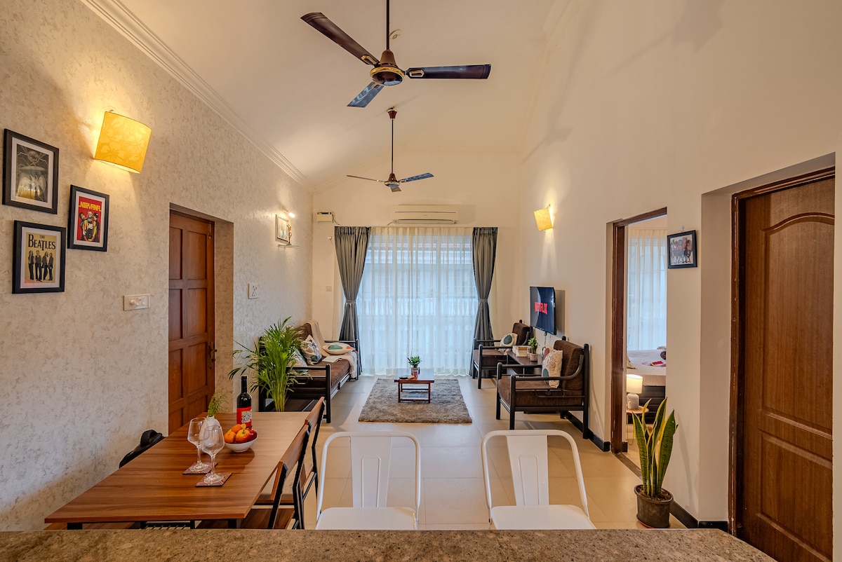2BHK | 100m to Morjim Beach, Modern, Peaceful Home