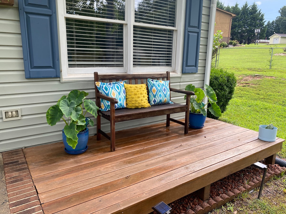 Pemandangan indah gunung-ganang dan piedmont beberapa saat dari Blue Ridge Parkway. Banglo Retro menawarkan pemandangan yang menakjubkan dengan suasana nostalgia. Rumah yang selesa dengan dek besar untuk minum kopi, makan, atau hanya duduk, berehat dan berendam dalam pemandangan! Berayun di anjung hadapan yang tertutup sambil mendengar anak sungai yang mengoceh. Kami mesra haiwan peliharaan, mempunyai pagar di halaman dan dek berpagar untuk memberikan ketenangan fikiran dan keselamatan untuk haiwan peliharaan anda. (yuran haiwan peliharaan $ 25) Masuk ke dalam dan ke masa lalu!