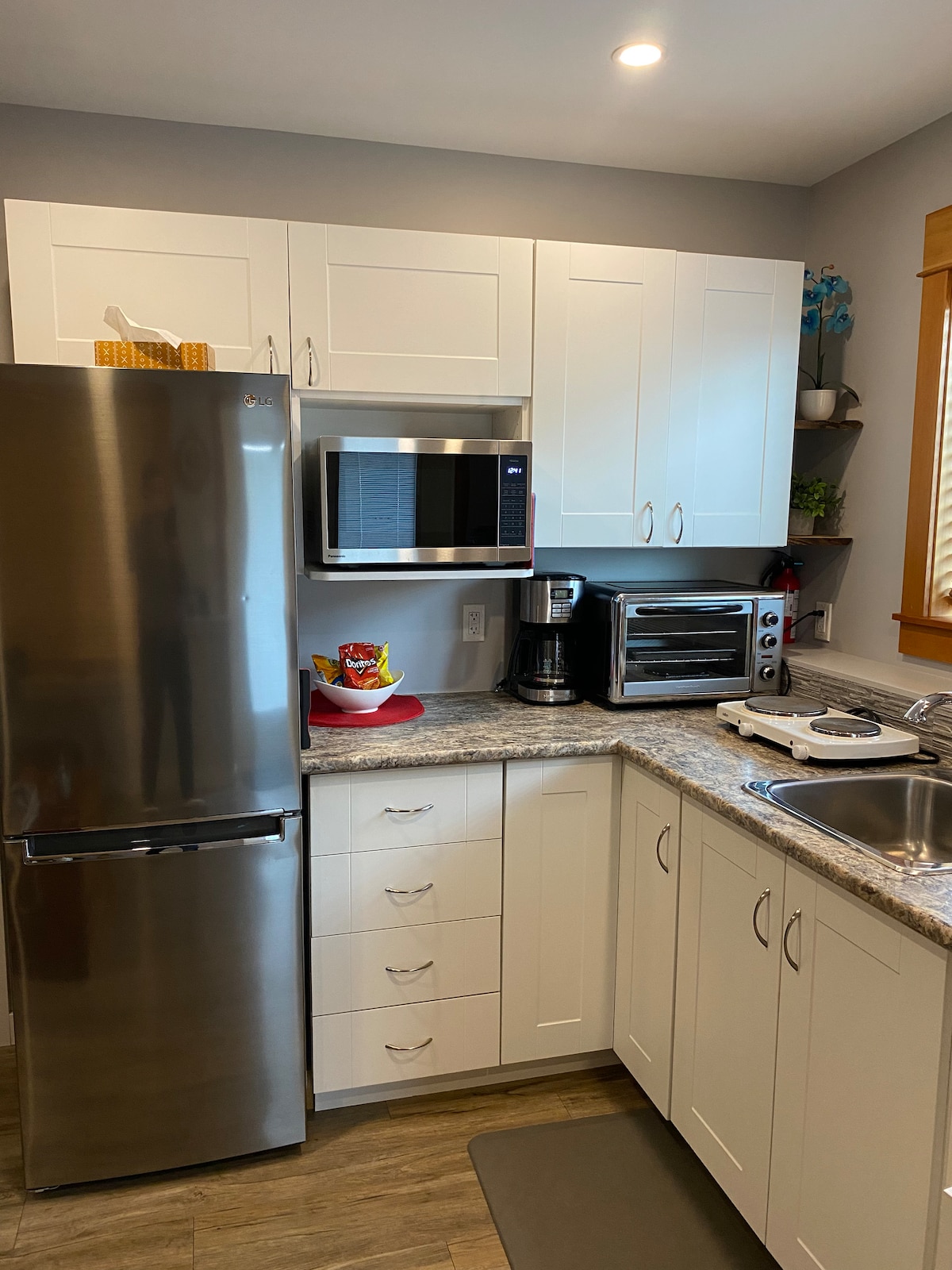 Hai! Suite 1 bilik tidur 700 kaki persegi yang baru dibina dengan perabot dan reka bentuk moden yang cerah dengan pemandangan laut di Campbell River yang cantik. Tempah di sini untuk menikmati kemewahan yang terdapat di Resort terbaik dalam privasi sepenuhnya. Nikmati pancuran hujan dengan lantai yang dipanaskan. Bersantai di tepi pendiangan gas sambil menonton Netflix. Ingin keluar dan bersiar-siar? Lokasi mudah ini hanya beberapa minit berjalan kaki dari Sea Walk, Hospital, Muzium Campbell River, kolam renang luar awam dan di seberang taman.