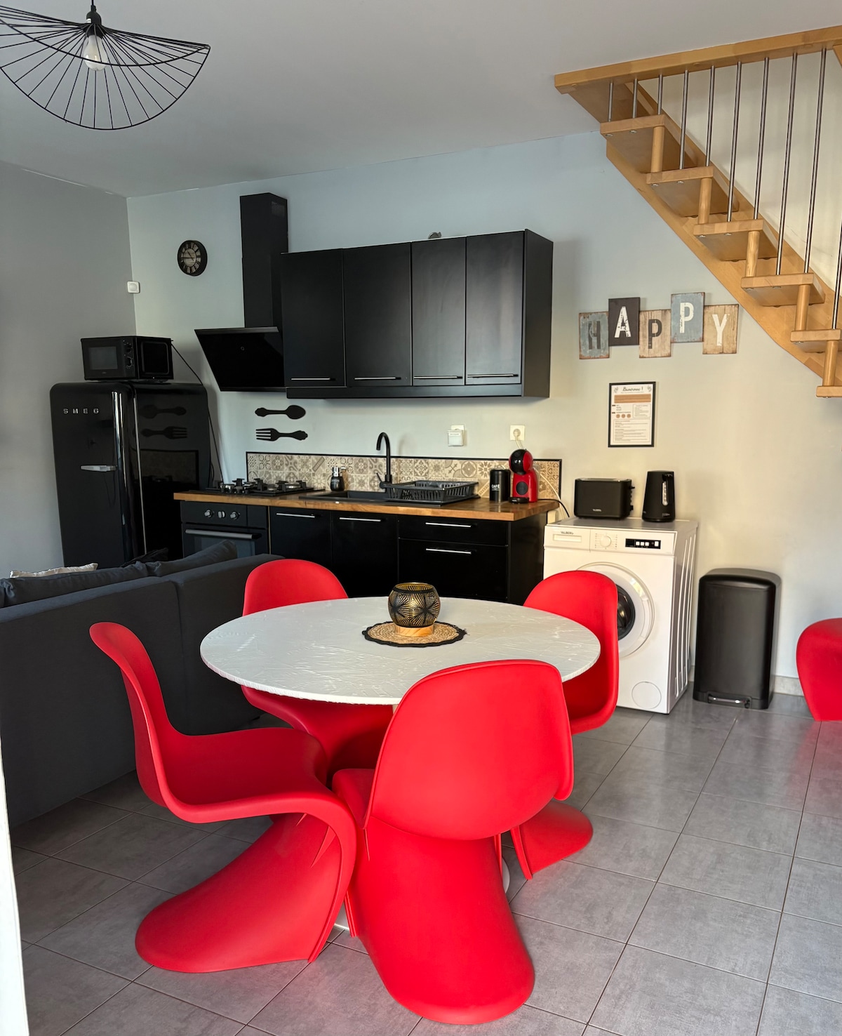 Studio hangat35m² dengan keselesaan yang diperlukan. Diubahsuai sepenuhnya di tengah-tengah pusat bersejarah Briey & 5 minit berjalan kaki dari Body of Water. Tempat letak kenderaan percuma di bangunan Pertukaran lebuh raya A4-A31 (10 minit) Restoran/kedai/supermarket + stesen pengecasan 800 m jauhnya. Tutup * Pusat pelancongan Amnéville * Taman Hiburan Wallygator Dapur yang lengkap dengan semua kemudahan. Katil dengan tilam premium 140 x 200 Katil. P & Kerusi.H atas permintaan Pintu masuk persendirian