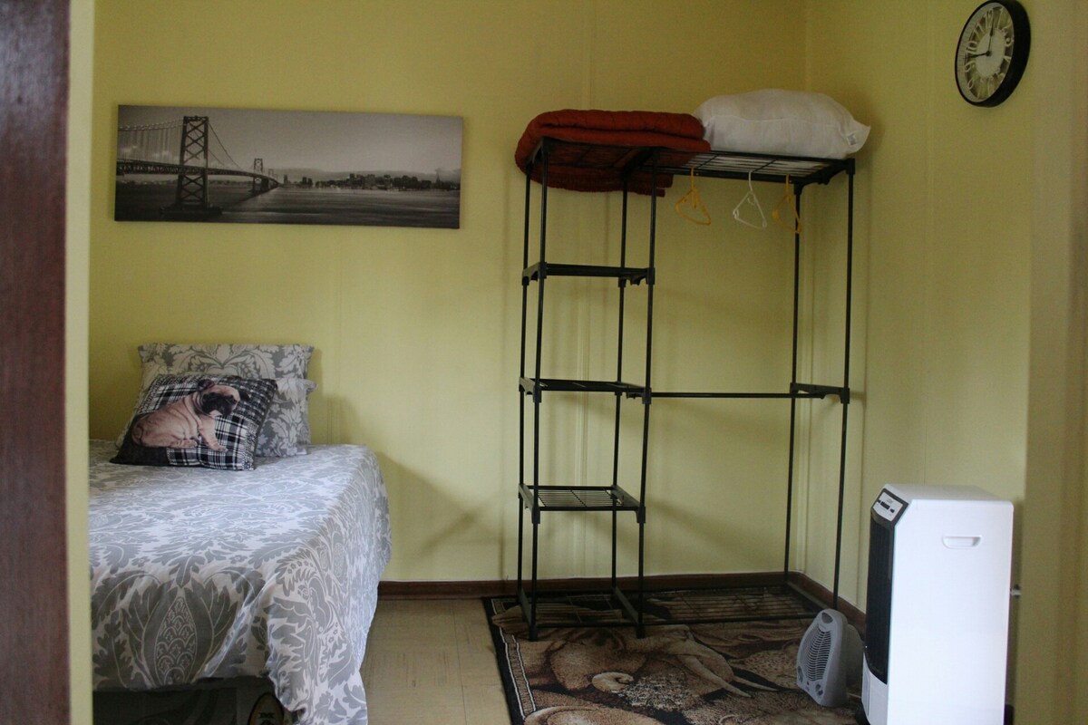 It's a small space for a single person looking to spend a night or few. It has a 3/4 bed and a bathroom. Laundry can be done at an extra charge. It is in a fully fenced complex with 24 hour security. We have a garage about 4km away from us with a steers, debonairs, kfc and fishaways. The mall is next to the garage as well where one can get everything they need