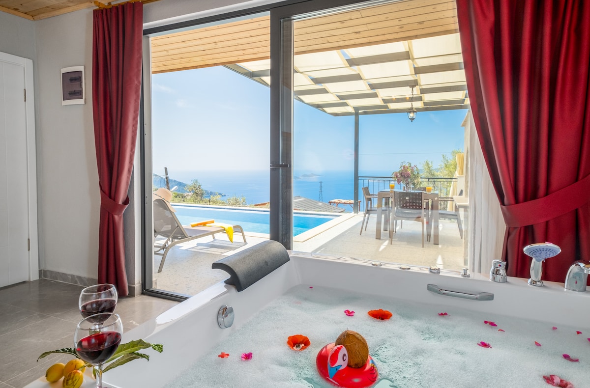 Kalkan merkeze yaklaşık 3 km olan villamızın yatak odasında jakuzi ve ebeveyn banyosu bulunmaktadır. Oturma odası ile birleşik açık plan mutfak mevcuttur. Geniş havuz terasında yemek masası, 2 şezlong, şömine ve 2 kişilik salıncak; villamız içinde ihtiyaç duyabileceğiniz mobilya mutfak araç gereçler vardır. Villamızın havuzu yerden yüksek olmakla birlikte, havuz terası ahşap çitlerle çevrilmiş ve korunaklı hale getirilmiştir. Arkadaki villlalardan görünmez. Muhafazakar aileler için uygundur.