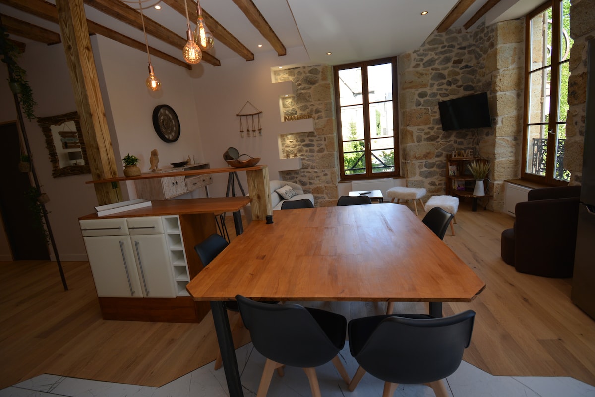 Di kaki Sancy massif, di sebuah kampung gunung kecil di tengah-tengah gunung berapi, kami dengan senang hati akan mengalu-alukan anda di rumah kecil kami yang cantik. Pencinta ruang terbuka yang luas, anda akan dimasuki oleh semua aktiviti yang ditawarkan oleh rantau kami. Sukan musim sejuk, hiking, berbasikal gunung, mendaki, bersiar-siar (Vulcania, Puy de Dôme, Puy de Sancy). Rumah abad ke-19 seluas 85 m2 diubahsuai sepenuhnya pada tahun 2018. Akses pantas melalui lebuh raya A89, keluar 25, 4 km dari tempat penginapan. Garaj persendirian.