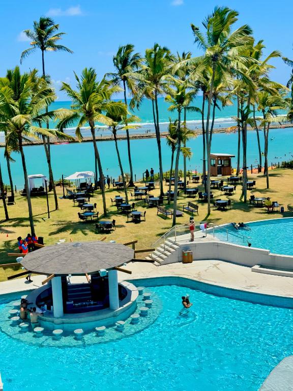 Resort Mewah di pinggir Pantai Muro Alto (kaki di Areia) Sacada menghadap laut dan kolam renang yang indah. 5min. da Praia de Porto de Galinhas penginapan yang mengandungi 1 bilik tidur dengan katil double bersaiz King, aircond, almari pakaian dan tv. bilik yang mengandungi katil double saiz sofa, aircond dan tv, dapur bersempena dengan ruang tamu yang mengandungi ketuhar gelombang mikro, kaunter, sinki, bar mini, peralatan makan dan pinggan mangkuk dan meja dengan 4 kerusi bilik mandi penuh dengan pancuran mandi air panas haiwan peliharaan kecil