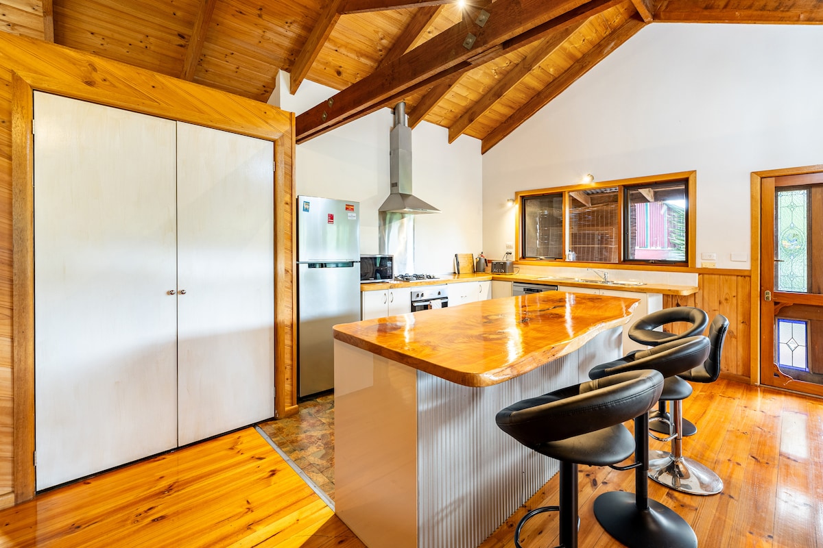 Selamat datang ke Forrest sebahagian daripada dunia yang indah. Studio kami hanya berjalan kaki sebentar ke pusat bandar dan 5 minit berjalan kaki ke trek basikal. Studio ini merupakan sebahagian daripada rumah kami yang mempunyai pintu masuk berasingan dan dibahagikan dengan dek yang besar. Studio ini mempunyai ruang tamu dan ruang makan terbuka dengan sistem pembahagian pemanas kayu yang selesa dan kipas. Dapur kecil dengan 4 pinggan panas gas,microwave dan peti sejuk. Kemudahan barbeku ada di dek untuk kegunaan anda dan taman yang indah untuk berehat .