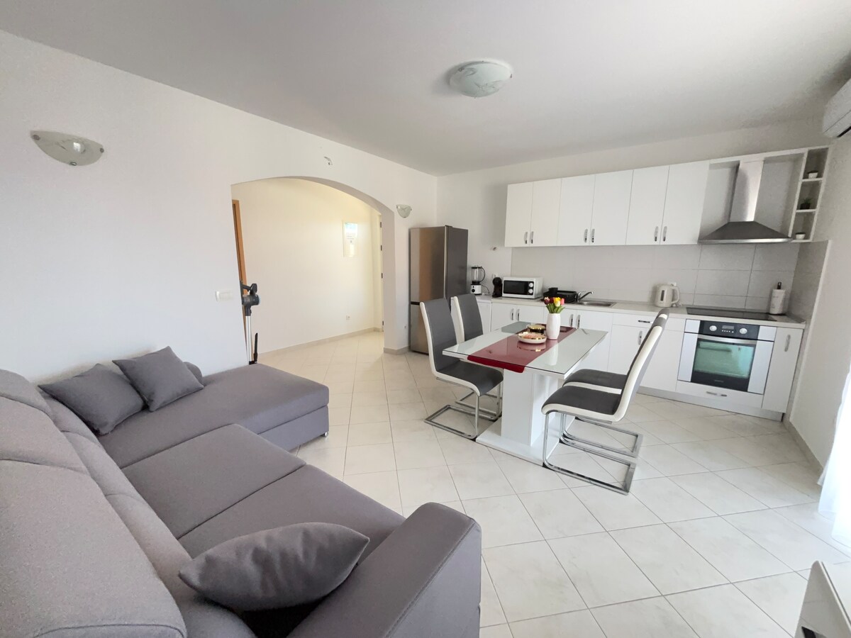 This new and mondern apartment is ideal for familly with kids.It is close to the most popular beach Slanica and it is 10 min walking to the center.The apartment is fully equipped(aircondition,tv,wifi and washing machine)You have also private parking in front of the house.There are two balcony.The front one wich is about 35m2 and second one small one from wich You can see the sea.There are two bedrooms,large kitchen and bathroom.