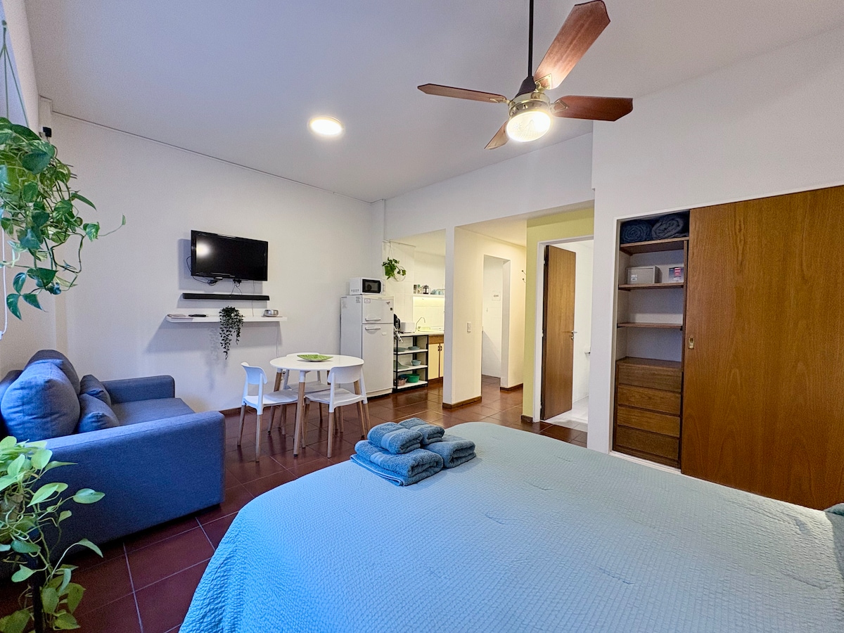 Selami diri anda dalam intipati Mendoza yang tulen dengan menginap di apartmen baru kami yang selesa dan tenang. Terletak di tengah Mendoza: kejiranan Bombal. Kejiranan yang indah dengan ruang hijau dan banyak kafe khusus. Anda berjarak 15 minit berjalan kaki dari pusat bandar dan General San Martín Park. Ruang ini mempunyai penyaman udara panas/sejuk, tilam baru, Wi-Fi, TV langsung, dan tempat letak kereta persendirian. Kami memberikan panduan mengenai pelancongan wain.
