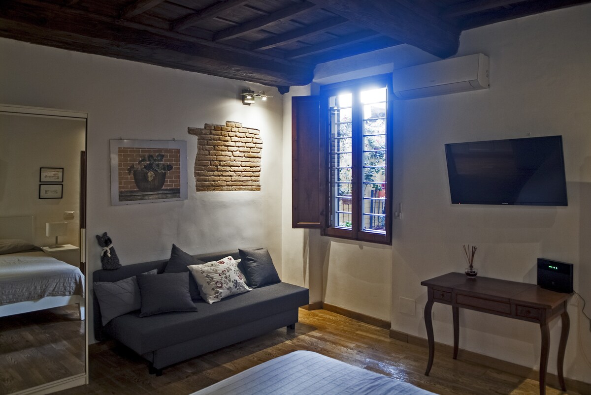 Apartmen ini terletak di tingkat dua dan atas bangunan biasa pusat sejarah Florence. Apartmen ini sesuai untuk dua orang, sangat intim dan selesa. Ia terdiri daripada ruang tamu yang cerah dan selesa, dapur kecil tetapi lengkap, bilik tidur double dan bilik mandi. Bilik tidur terbuka di teres yang dilengkapi dengan meja dan kerusi. Bilik mandi diakses dari bilik tidur. Di dalam apartmen anda akan menemui semua kemudahan yang anda perlukan untuk keselesaan terbaik anda.