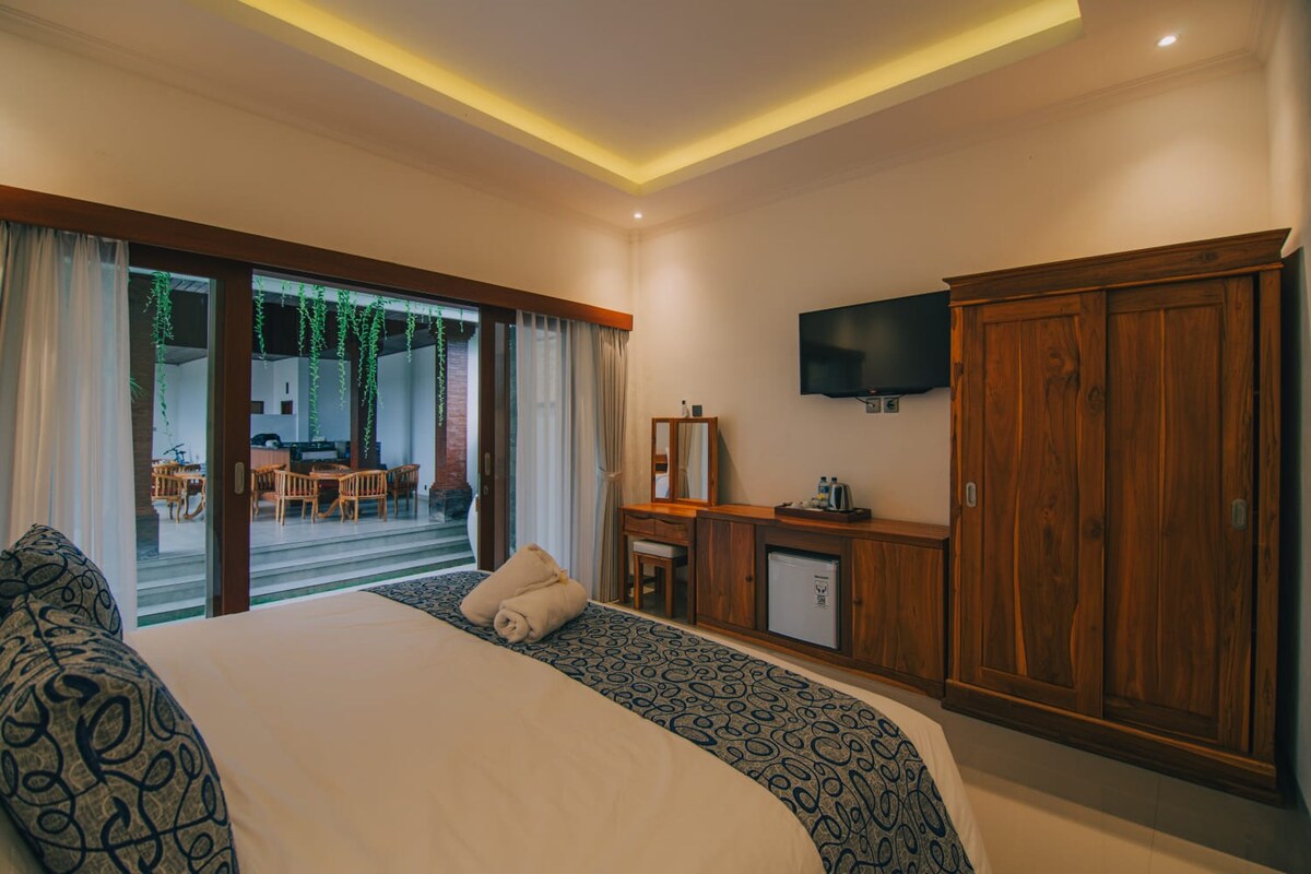 Tegal Besung Cottage, bilik kabin kayu yang selesa yang terletak di tengah-tengah kehijauan yang subur dan menghadap taman tropika kami yang meriah. Dilengkapi dengan kemudahan moden termasuk AC, WiFi percuma, dan bilik mandi peribadi, tempat percutian ini menawarkan ruang yang tenang untuk berehat. Hanya 2km dari pelabuhan Banjar Nyuh dan tidak jauh dari pantai Crystal Bay yang menakjubkan, pengembaraan dan bersantai berada dalam jarak yang mudah dicapai. Restoran berdekatan menawarkan pilihan tempat makan yang lazat, manakala perkhidmatan kami termasuk sewaan skuter dan lawatan.