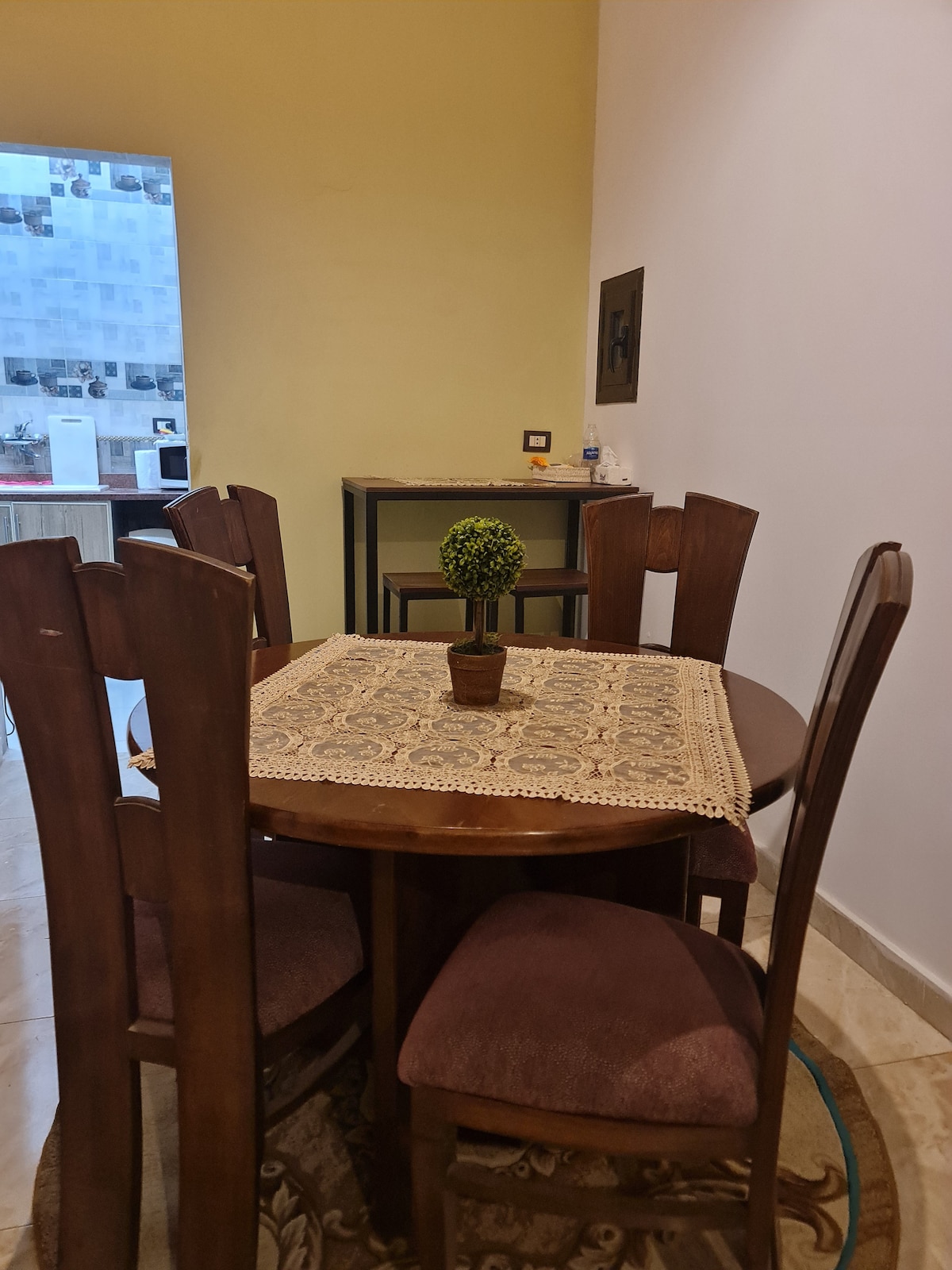 All what you need in this breath-taking apartment. •Best Location. •2 bedrooms “2 Queen Beds”. -1 sofa bed. •1.5 Bathrooms. •1 Shezlong Sofa. •Fully Equipped Kitchen. •Washing Machine. •Dinning Room. •Iron Available. •3 TVs ( iptv) •Free Wifi. •3 Available Air Conditioners (Cold/Warm). •Free Electricity, Water & Gas Bills for short stays only. Long-term reservation will have to pay Electricity, Water & Gas bills. • Security Guards.