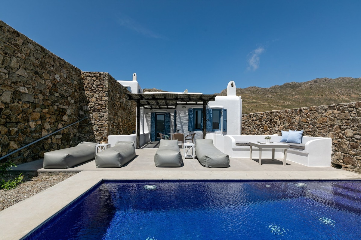 wild view mykonos villa Loukritia with pool,jacuzi