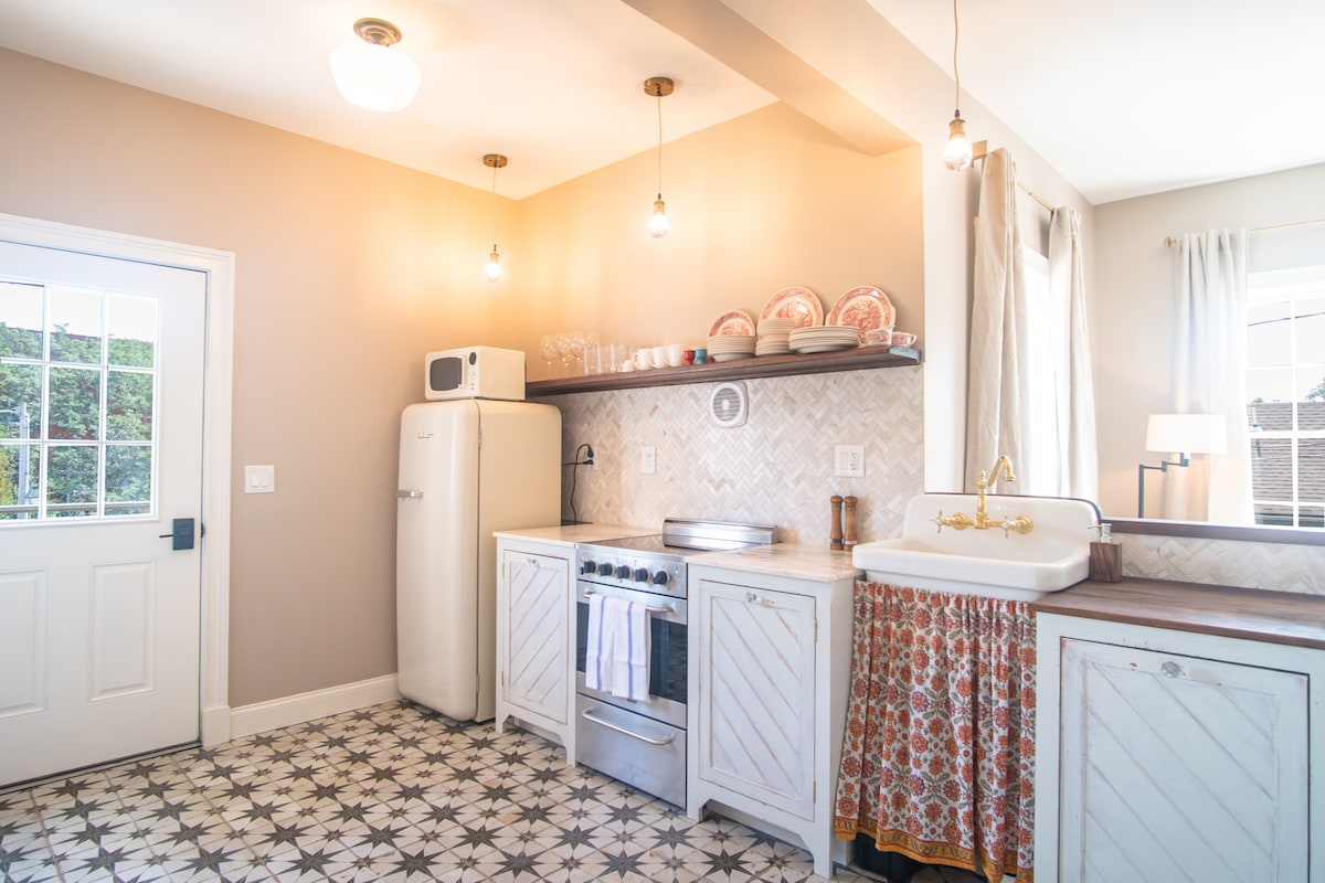 Sebuah sekolah dari tahun 1909—kini anggun, dipulihkan dan direka semula. Dua katil besar, dua bilik mandi mewah, bata dan gerbang, laluan abadi. Berjalan kaki sebentar membawa anda ke tempat terbaik Mystic: kedai dan makanan laut, wain dan tempat berehat. Sesuai untuk pasangan atau rakan-rakan yang suka mengembara—dengan ruang untuk bernafas, anda akan berasa selesa seperti di rumah sendiri. Minum Prosecco, tidur dengan tenang—tiada percutian yang lebih manis daripada ini.
