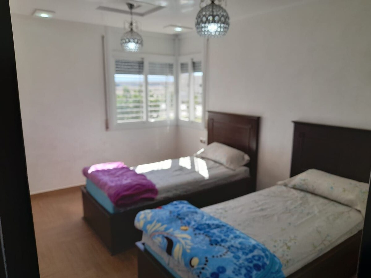 Vila moden yang luas dengan setiap keselesaan. 5 minit dari lapangan terbang int. Nador. Taman hijau yang indah di mana anda boleh duduk lewat malam dan bermain kanak-kanak dengan selamat. Dan berehat pada waktu petang di jakuzi berganda dengan pencahayaan mood dan nikmati secawan kopi atau minuman sejuk dari bar mini di dalam bilik. Pasar raya berhampiran dalam jarak berjalan kaki. 20 minit dari Nador dan pantai. Parkir kereta di taman atau di luar depan rumah di bawah pengawasan kamera.. Sehingga 6 tetamu termasuk kanak-kanak