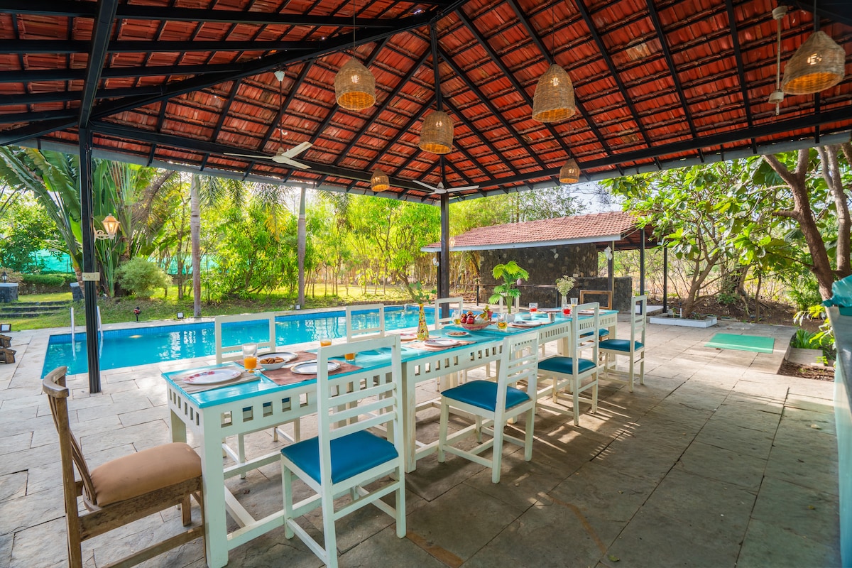 Rumah Ladang Bergaya Desa dan Kolam Besar di Alibaug