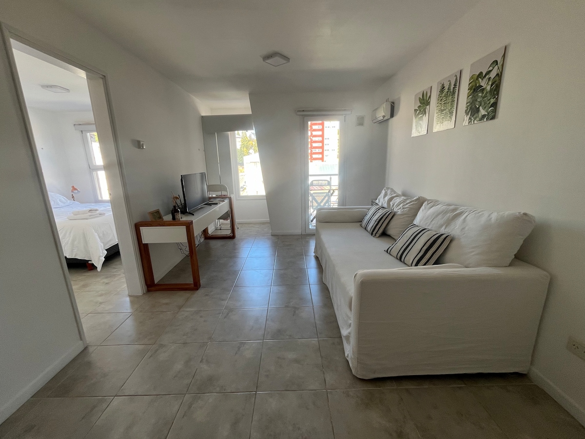 Nikmati keselesaan, cahaya semula jadi, dan pemandangan Bariloche yang terbaik di apartmen yang baru dilengkapi perabot ini. Sesuai untuk 2 tetamu, dengan bilik tidur yang selesa, dapur di ruang tamu dan bilik mandi yang luas. Kekal hangat dengan pemanas bawah lantai, satu kemestian untuk pengembara yang sensitif terhadap kesejukan. Selain itu, kami mempunyai penjana untuk sandaran. Lokasi: Kami tidak berada di pusat bandar, menjadikannya tempat percutian yang ideal untuk mereka yang mencari ketenangan dan pemandangan yang menakjubkan jauh daripada kesibukan bandar. Sebaik-baiknya datang dengan kereta. Uber/Cabify tersedia