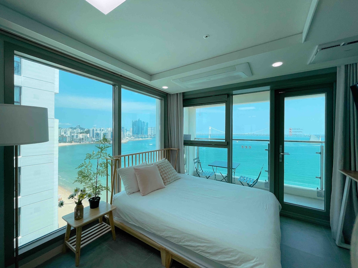[UH SUITE]#The Haeundae#Bilik 4 orang#Pemandangan Laut#Pantai Haeundae#1 minit berjalan kaki#Spa dalam bilik