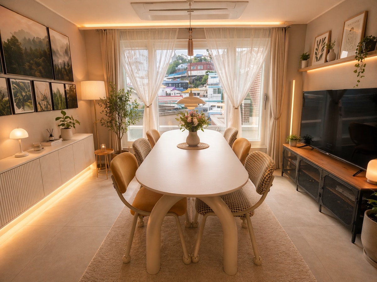 Ruang persendirian untuk satu keluarga berkeluasan 30 pyeong (99 m²) yang berperibadi untuk hanya satu kumpulan Cipta kenangan di #TongyeongGamseong untuk percutian pasangan, rakan atau keluarga >> Penginapan ini terletak di tengah-tengah Zon Pelancongan Khas Mirokdo, dalam jarak 10 minit berjalan kaki dari Luji, kereta kabel dan tempat-tempat pelancongan Donam, serta 10 minit memandu dari Dongpirang, terminal feri penumpang, kedai runcit, Gangguan dan Pasar Jungang. Ia menawarkan akses mudah ke pelbagai destinasi pelancongan. Ini ialah ruang yang santai untuk tetamu, menampilkan hiasan dalaman kayu walnut yang baru diubah suai. Walaupun anda tiada kereta, ia terletak dalam jarak 1–2 minit berjalan kaki dari perhentian bas, jadi tiada kesulitan besar untuk bergerak.