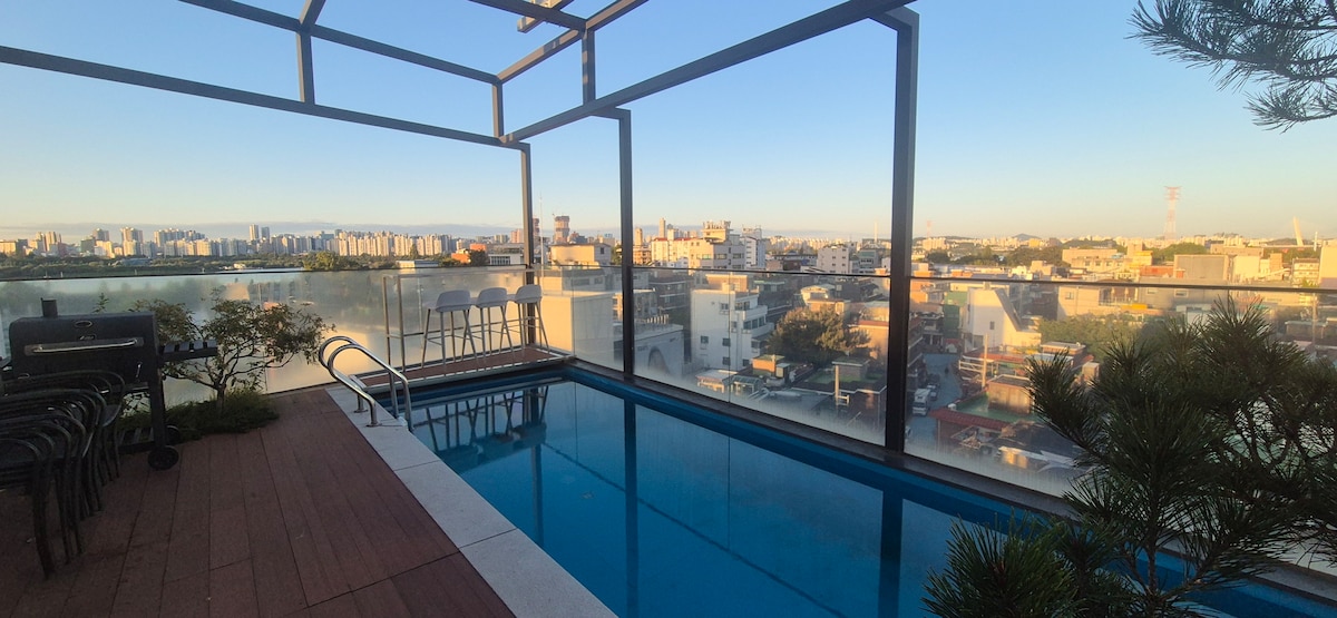 Penginapan ini menawarkan ruang yang luas dan reka bentuk yang bergaya, menjadikannya sesuai untuk perjalanan berkumpulan sehingga 8 orang. Ini ialah penthouse premium di mana anda boleh menikmati pemandangan latar langit Songdo yang indah dengan sepintas lalu. Melalui ruang tamu yang luas dan tingkap yang terbuka, anda boleh menikmati pemandangan bandar yang menyegarkan pada waktu siang dan pemandangan malam yang menakjubkan pada waktu malam. Ruang ini sesuai untuk percutian keluarga, berkumpul bersama rakan-rakan, perjalanan perniagaan atau penginapan untuk meraikan peristiwa istimewa, menampilkan bilik tidur yang selesa, hiasan dalaman yang bergaya dan ruang makan yang luas. Sorotan penginapan Pemandangan bandar panorama dari tingkat tinggi Ruang tamu dan ruang makan yang luas 2 katil queen dan 2 tilam topper untuk 2 orang Tersedia dengan akaun Netflix dan TV Pintar peribadi WiFi percuma Tempat Letak Kereta Percuma Jangka panjang tersedia Daftar Masuk Sendiri Sekitar Taman Pusat Songdo Premium Outlet Hyundai Triple Street Convensia 25-30 minit dengan kereta dari Lapangan Terbang Incheon