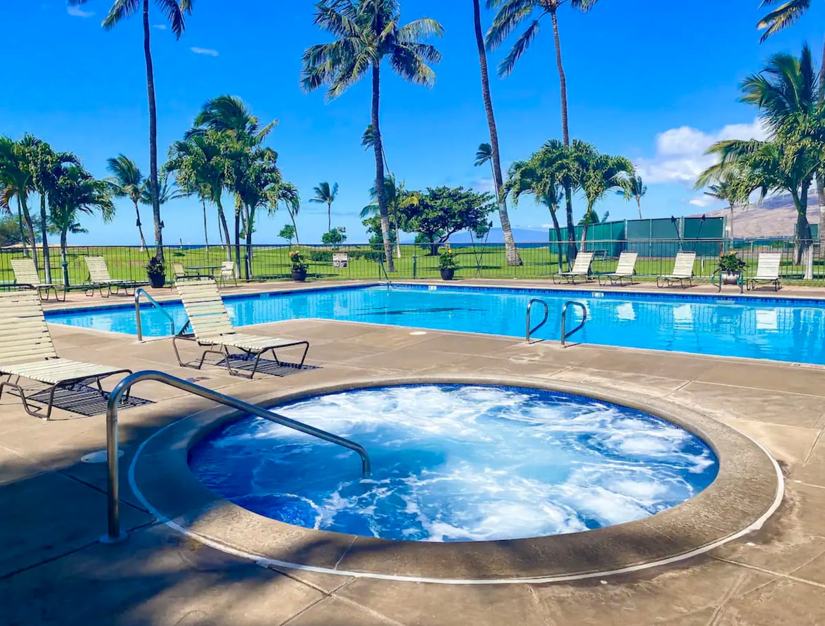Maui Sunset is a gorgeous Oceanfront property with immaculate landscaping and some of the best sunset views in Kihei. It's a great place to enjoy that much deserved family vacation or couple's getaway. Many guests return year after year to stay at Maui Sunset. Amenities: Large pool, hot tub, sauna, gym, shuffleboards, golf putting green, 6 outdoor grills, and access to tennis courts. Activity Desk is conveniently located poolside for booking your island excursions or rental equipment.