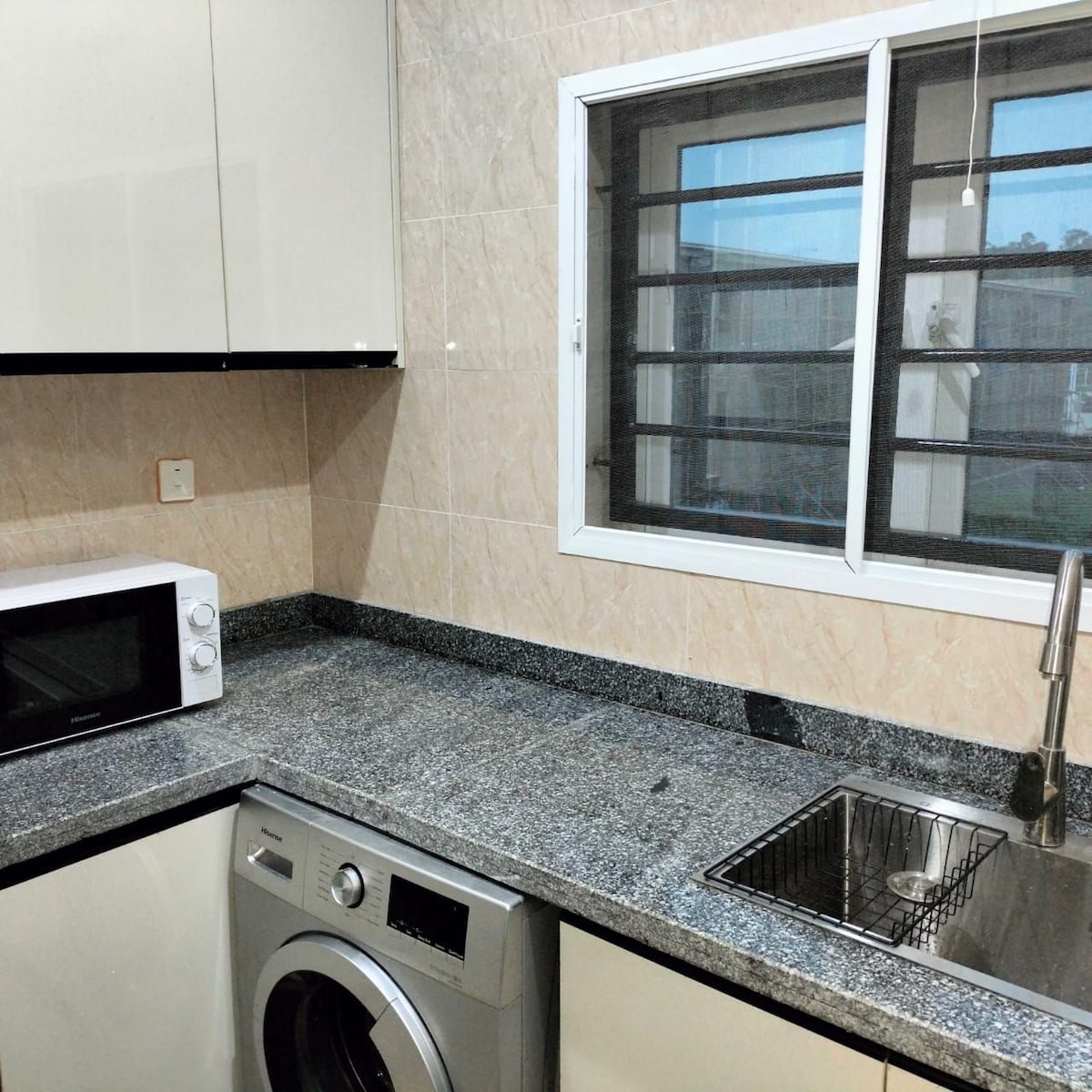 Langkah masuk ke ruang yang terasa tenang serta-merta apabila bunyi bising bandar semakin pudar disambut oleh pasukan di tapak kami, sentiasa bersedia untuk membantu dan memastikan daftar masuk yang lancar. • Lokasi pusat bandar, 7 minit memandu ke wuse ii • Kehadiran keselamatan yang tinggi • Elektrik 24/7 (Inverter & Penjana) • Perkhidmatan pembersihan harian • Dapur lengkap (Dapur, periuk, kuali, pembuka wain) • Semua bilik en-suite • TV Pintar & Wifi Pantas • Tuala & Kemudahan Mandian • Tempat Letak Kereta Percuma • Hantar mesej untuk penginapan yang diperibadikan!